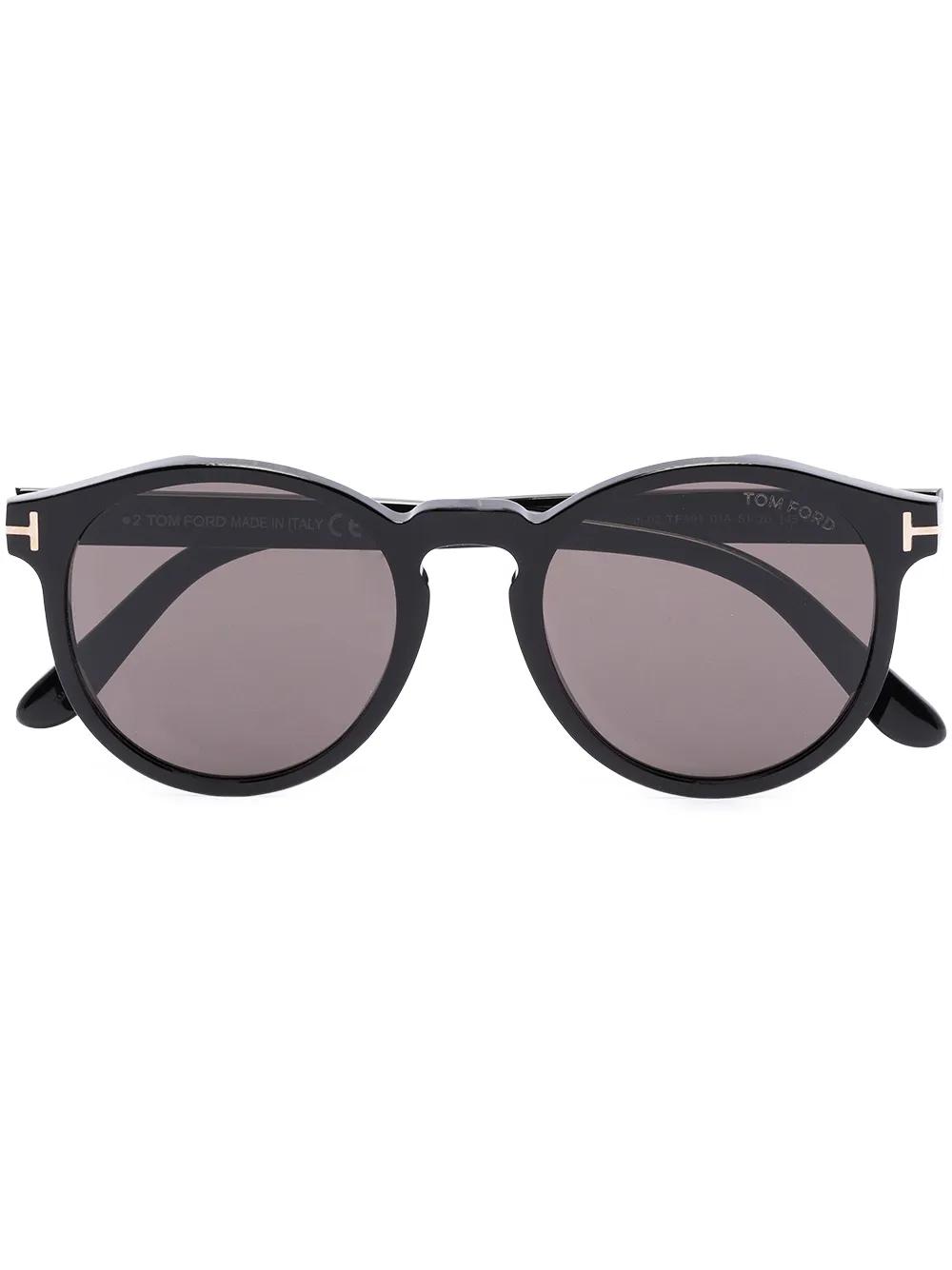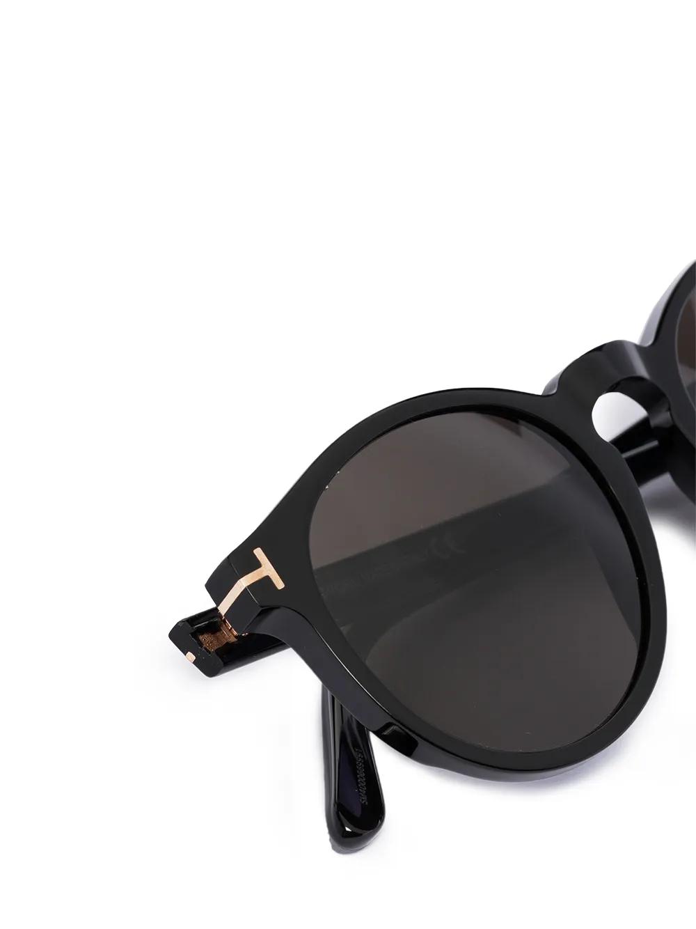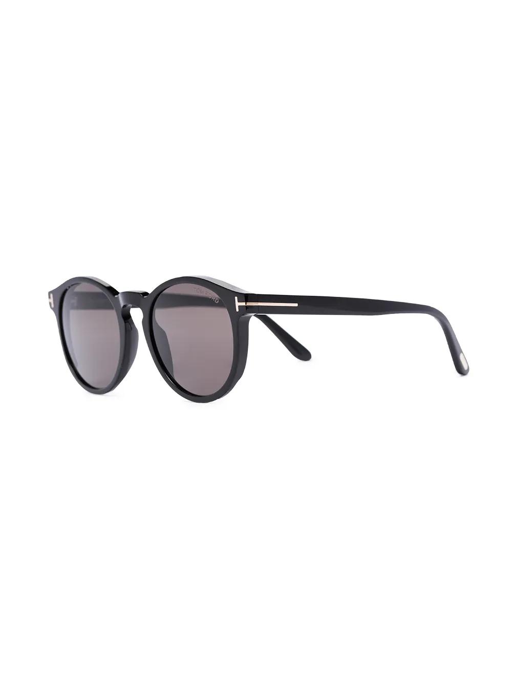black round frame grey tinted lenses gold-tone hardware straight arms curved tips UV-protective lenses These glasses come with a protective case.