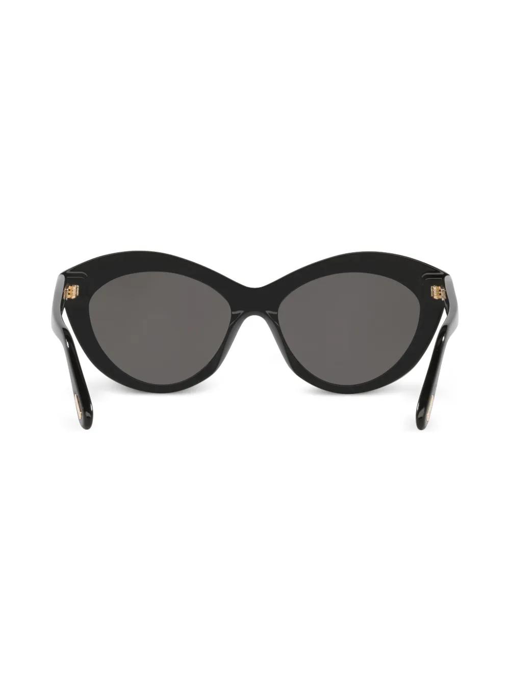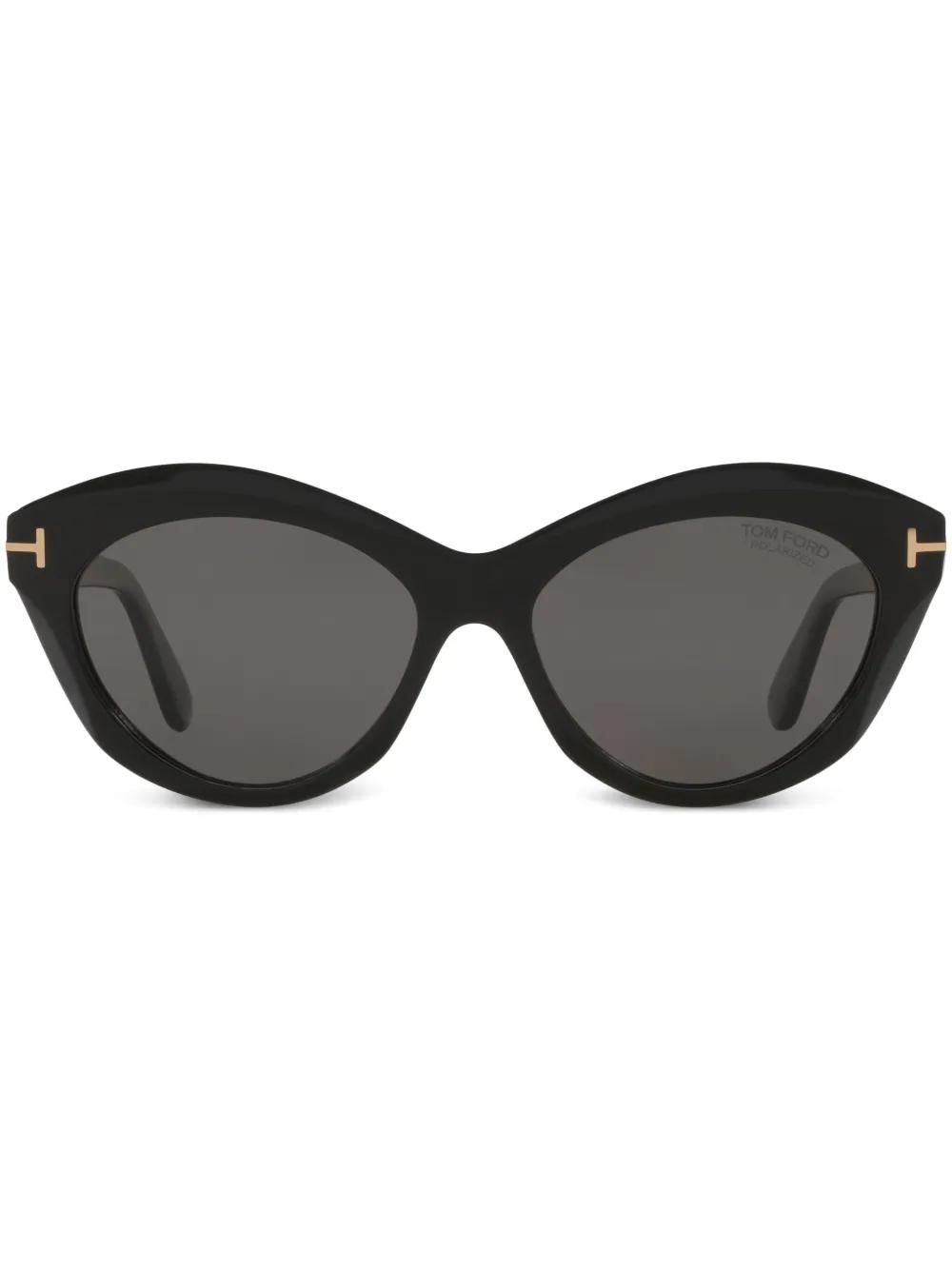 black acetate cat-eye frame tinted lenses UV-protective lenses gold-tone hardware signature T-shaped hinge detail straight arms curved tips These glasses come with a protective case.