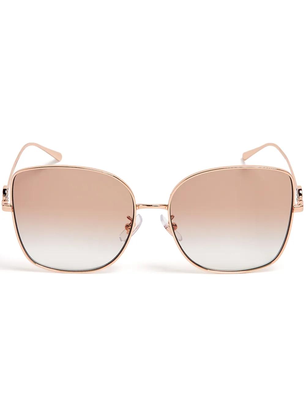 pink gold-tone metal square frame gradient lenses UV-protective lenses nose pads logo plaque at the arm straight arms curved tips These glasses come with a protective case.