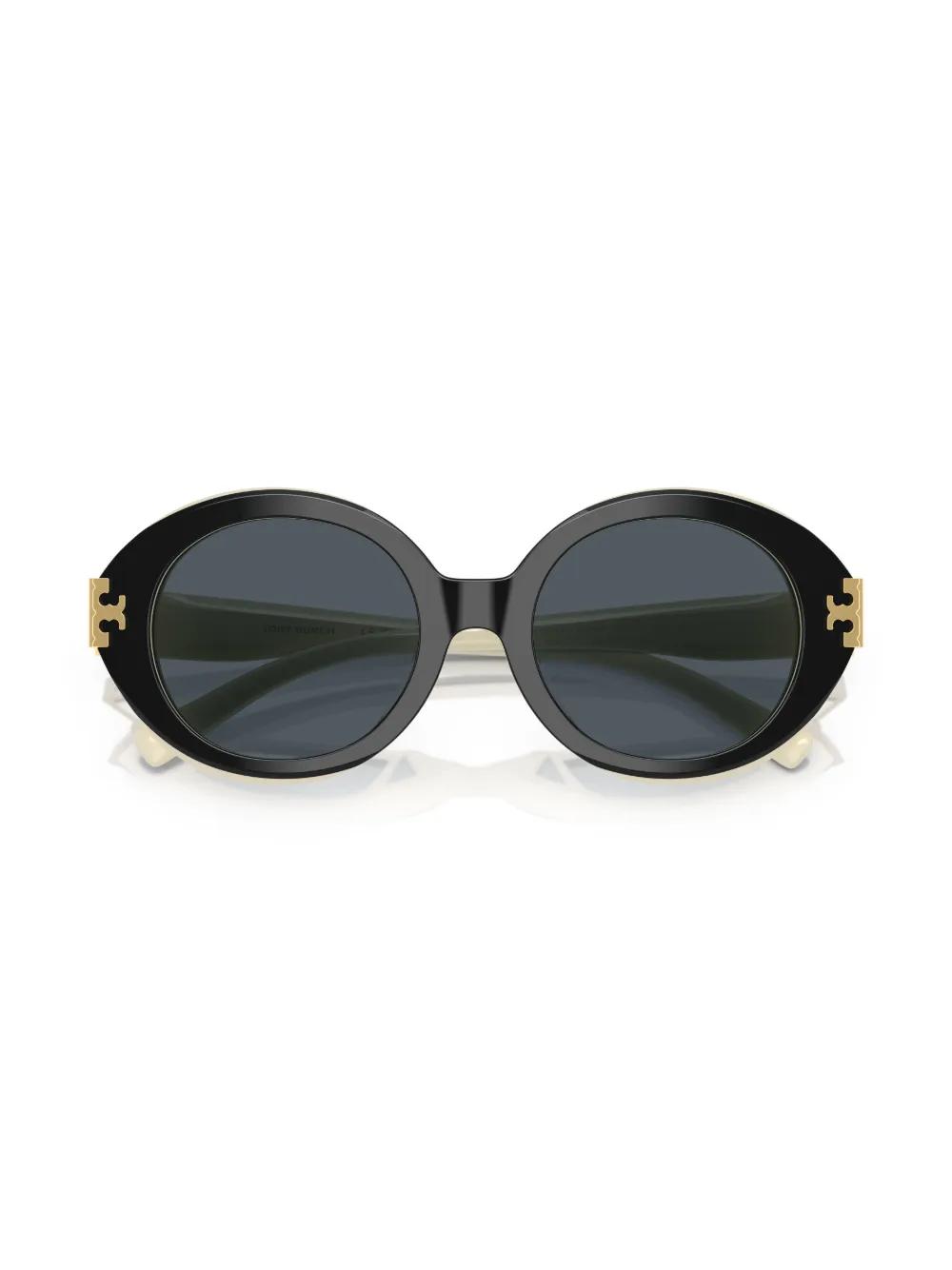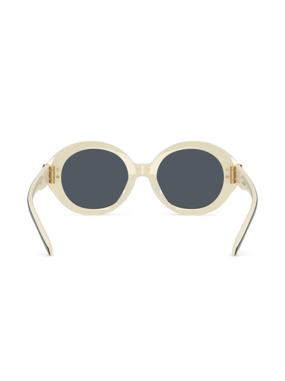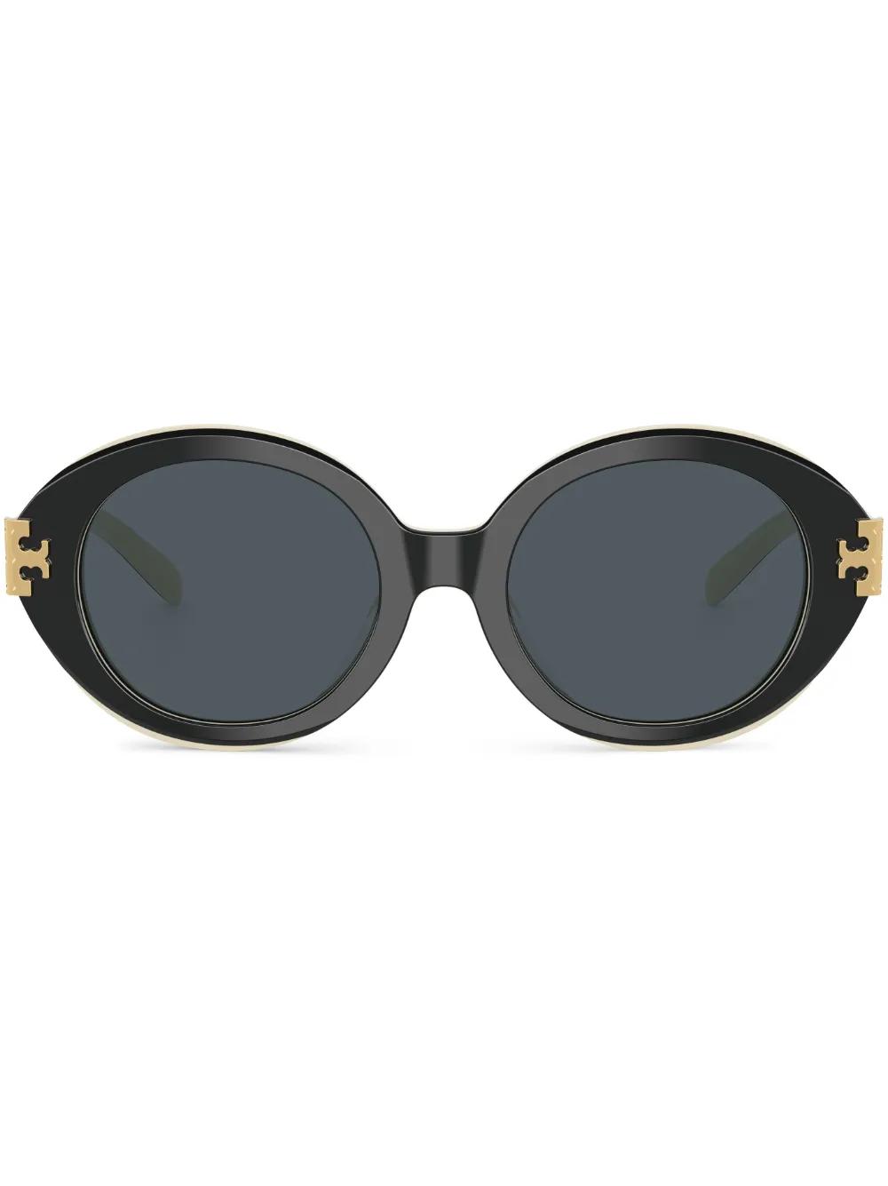 black acetate round frame grey tinted lenses UV-protective lenses gold-tone logo plaque logo print at the arm straight arms curved tips These glasses come with a protective case.