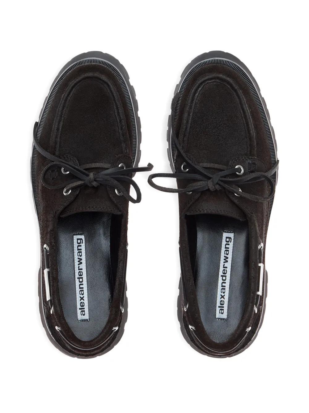 brown suede upper lace-up fastening metal eyelets branded tongue label