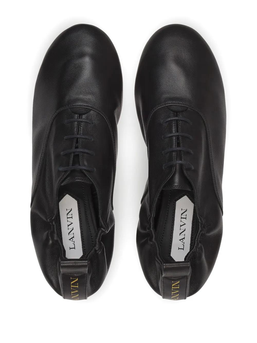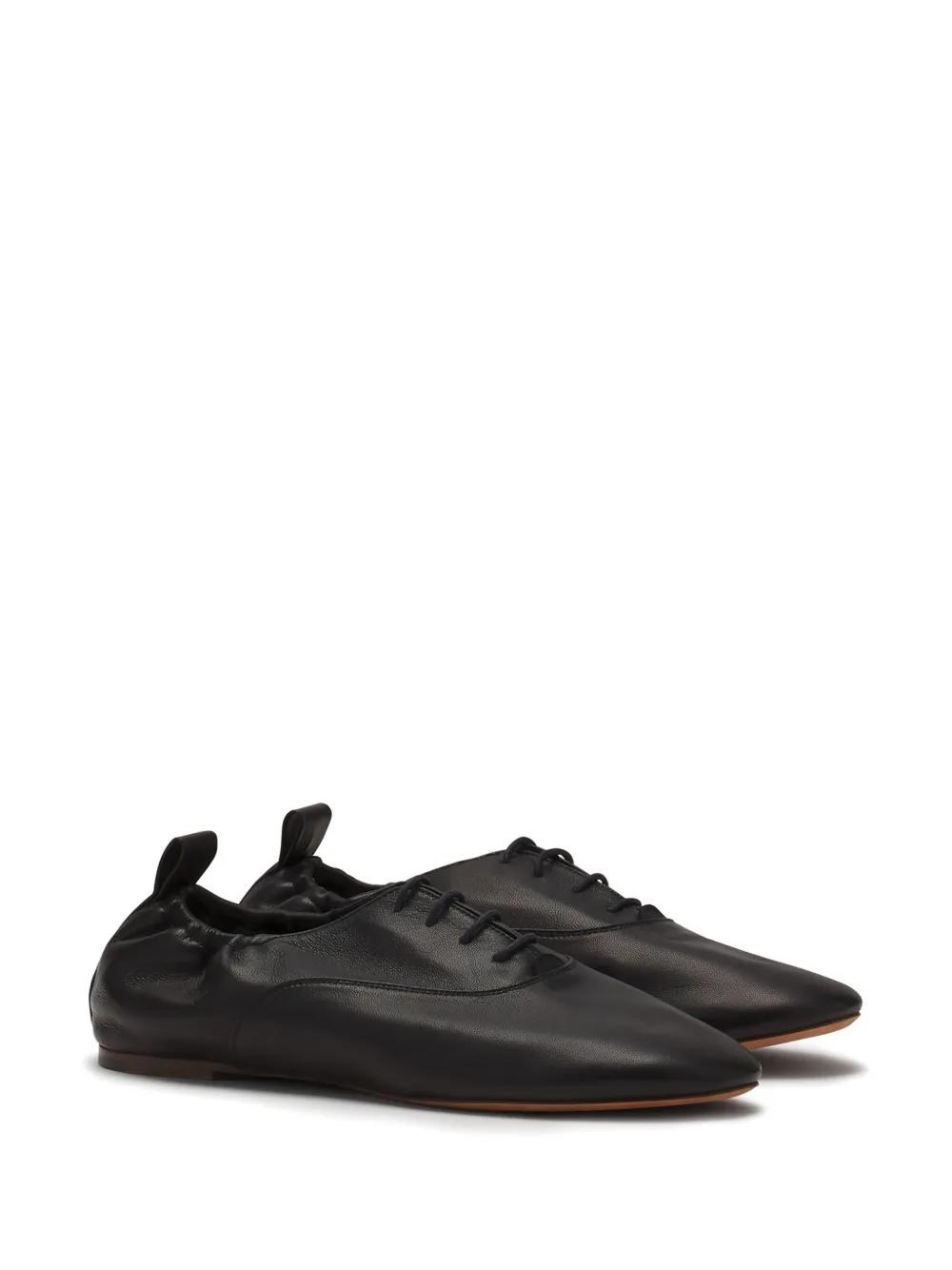 black front lace-up fastening pull-tab at the heel elasticated trim flat rubber sole