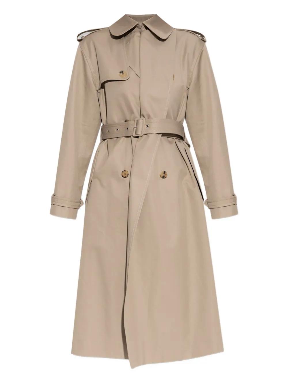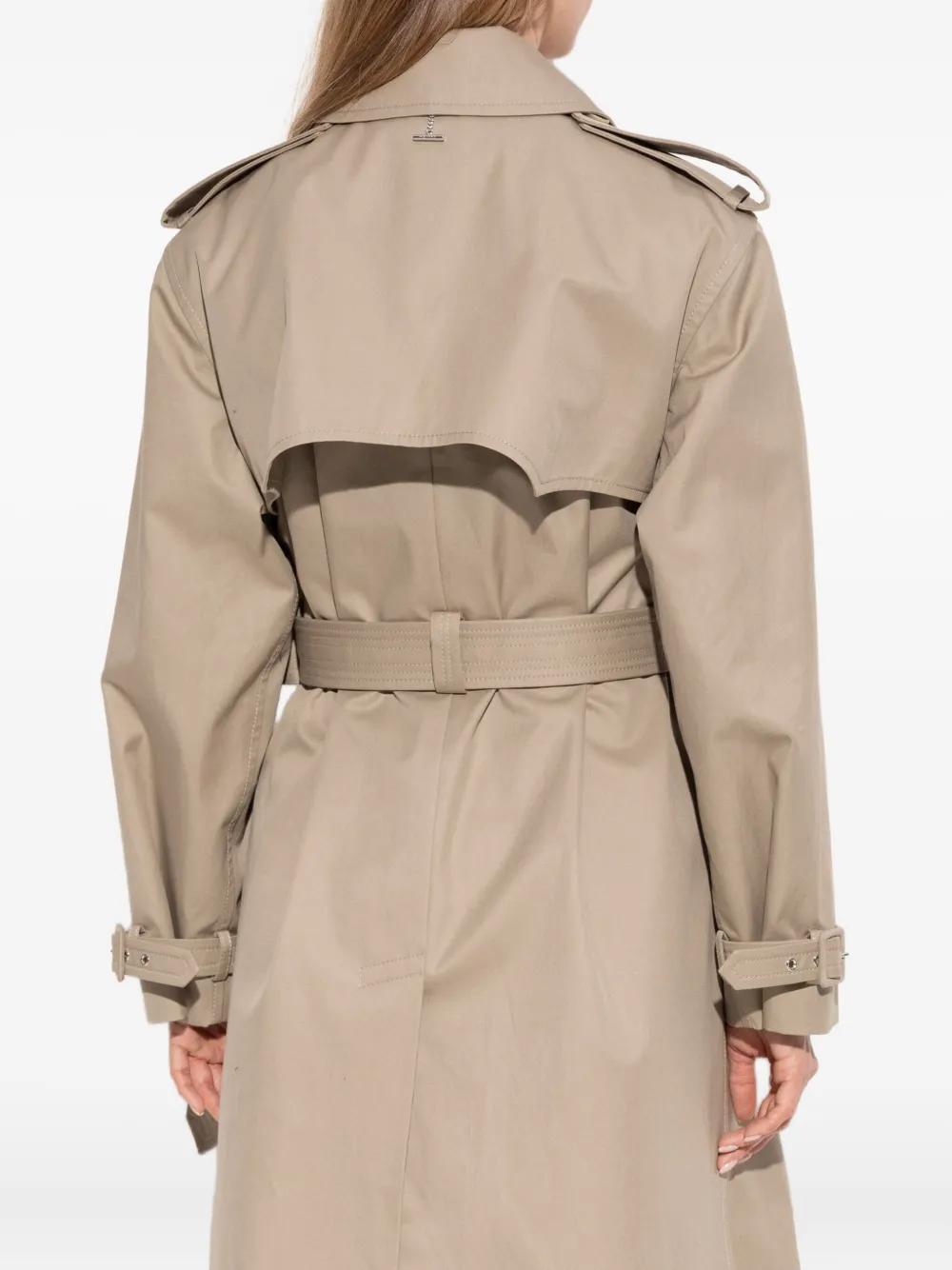 beige notch lapels belted waist epaulettes side pockets button fastening