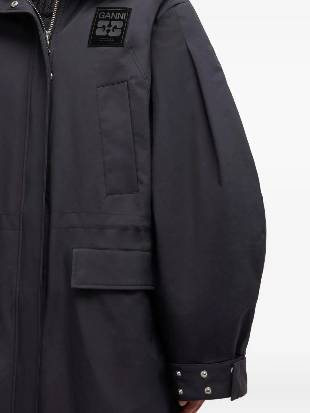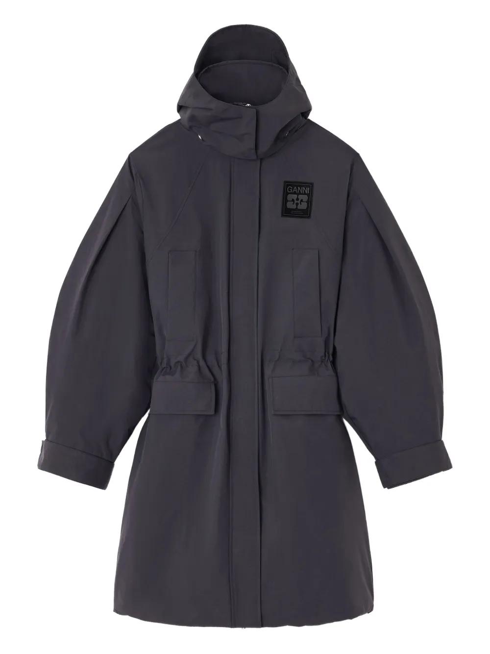 dark grey hooded neckline balloon sleeves snap-button cuffs logo patch