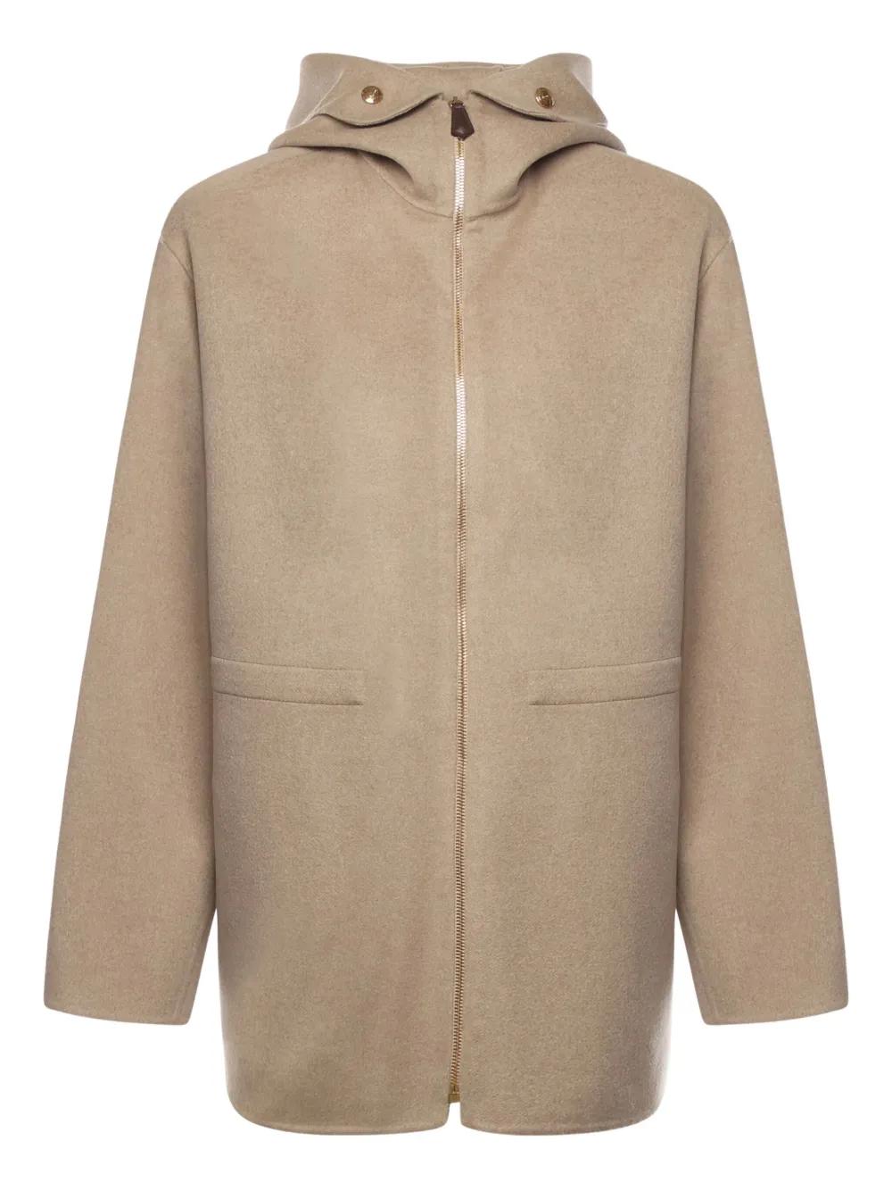 sand beige classic hood zip fastening front pockets button detailing long sleeves
