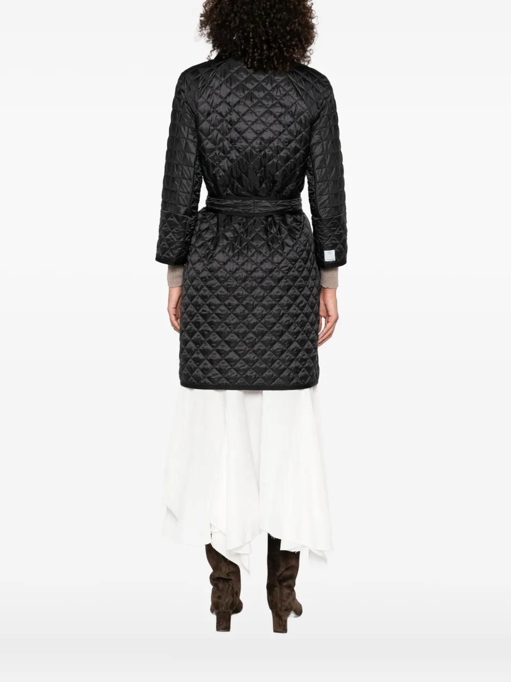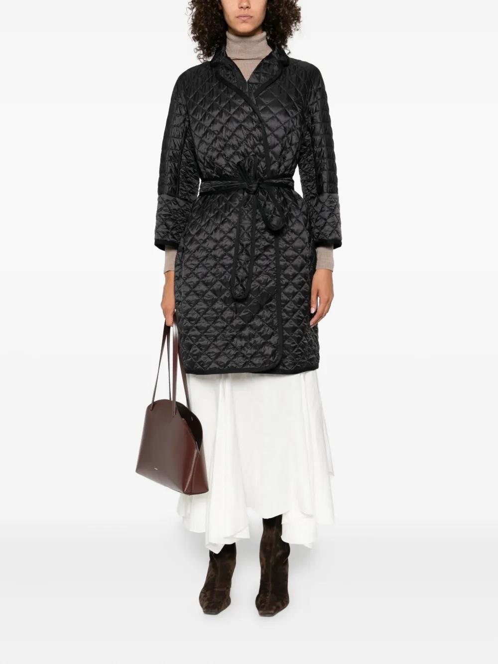 black quilted design leather insert hooded neckline snap button fastening long sleeves