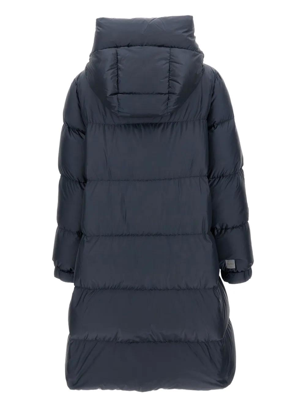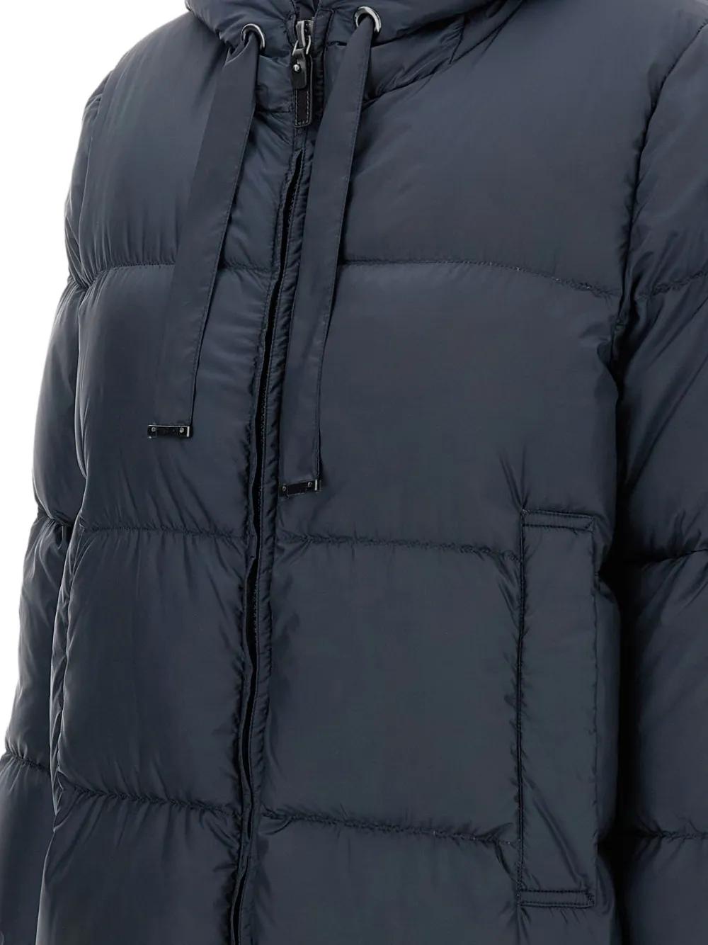 navy blue drawstring hood zip fastening drawstring detail panelled design front pockets