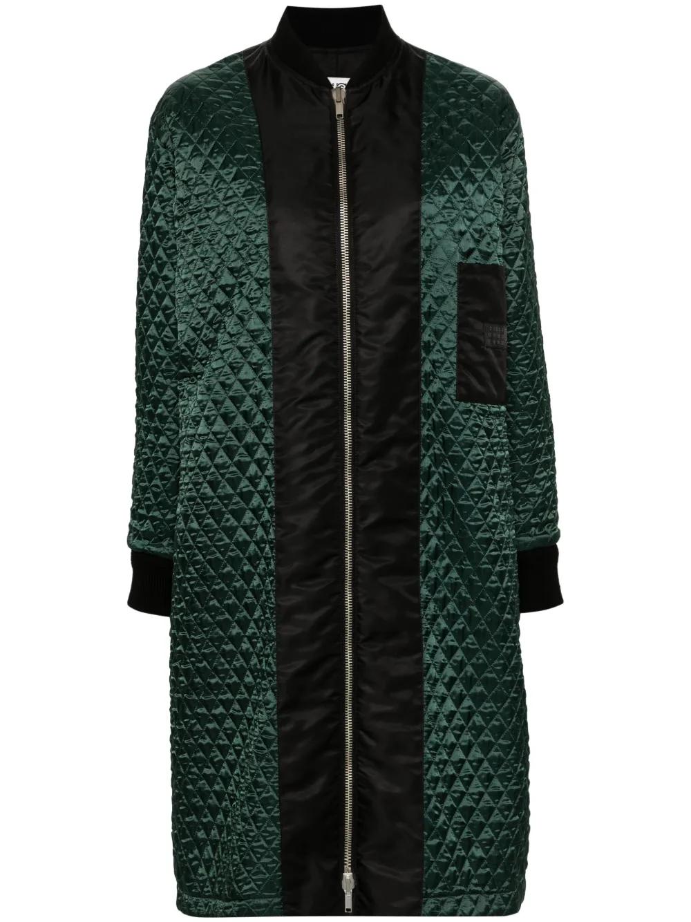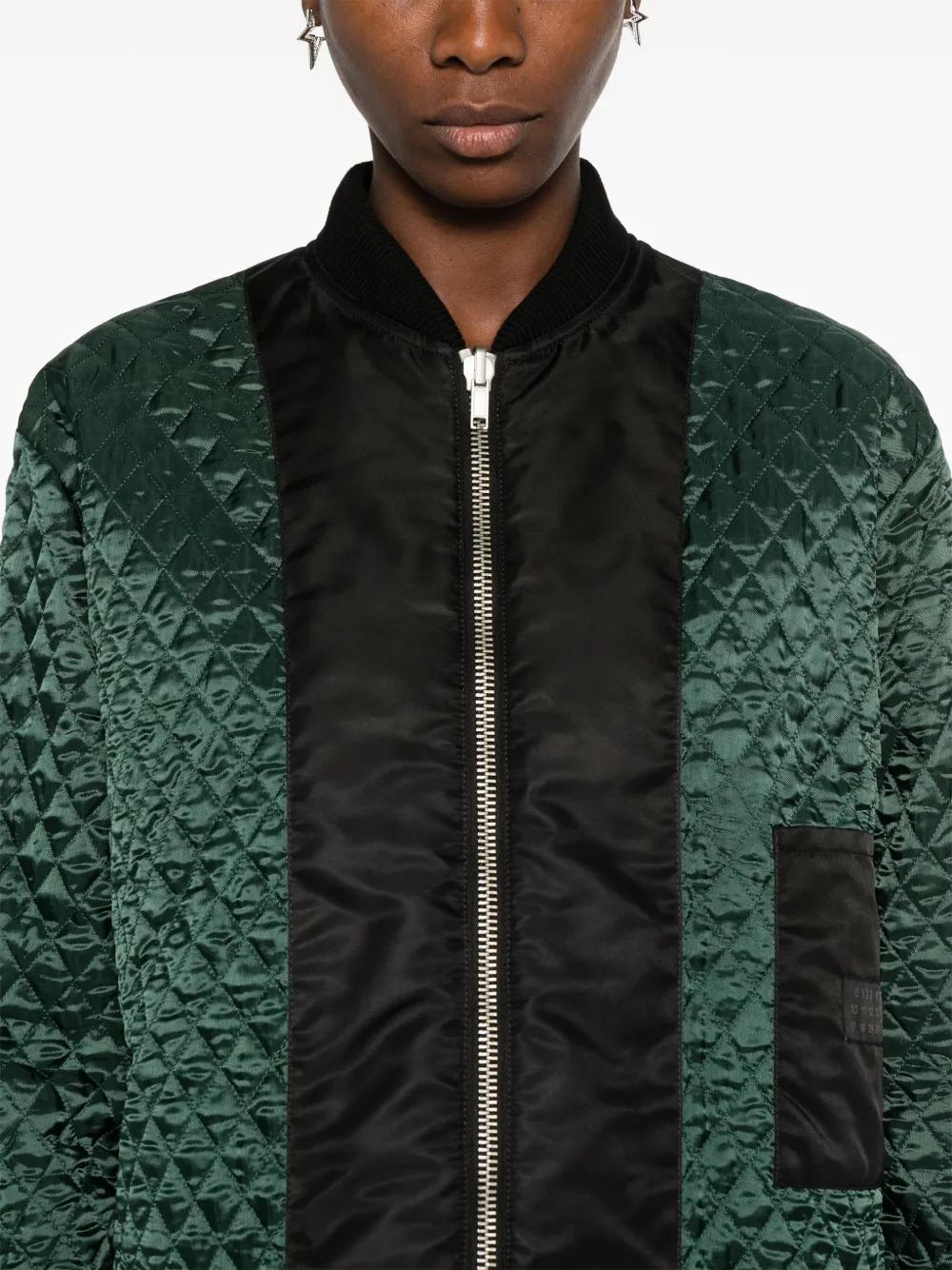 green/black quilted baseball collar long sleeves ribbed cuffs chest patch pocket signature numbers motif signature single-stitch logo internal zip-fastening pockets straight hem front two-way zip fastening