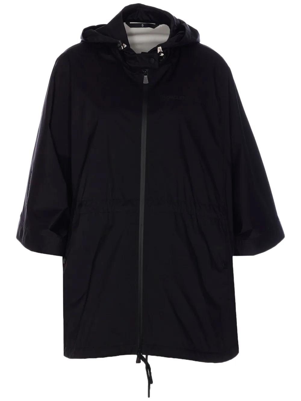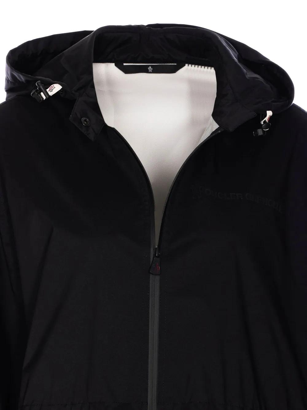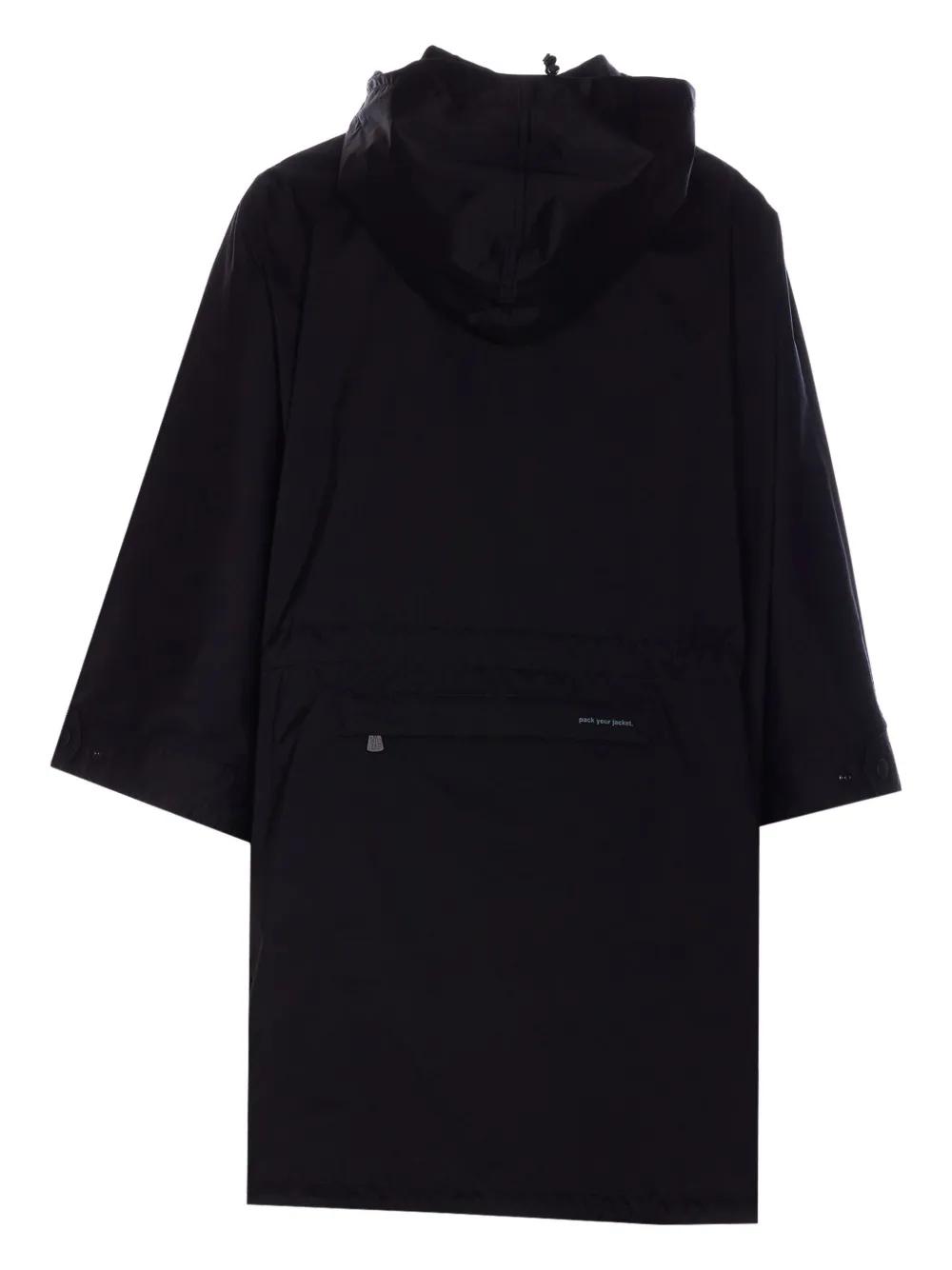 black front zip fastening drawstring hood long sleeves rear zip-fastening pocket
