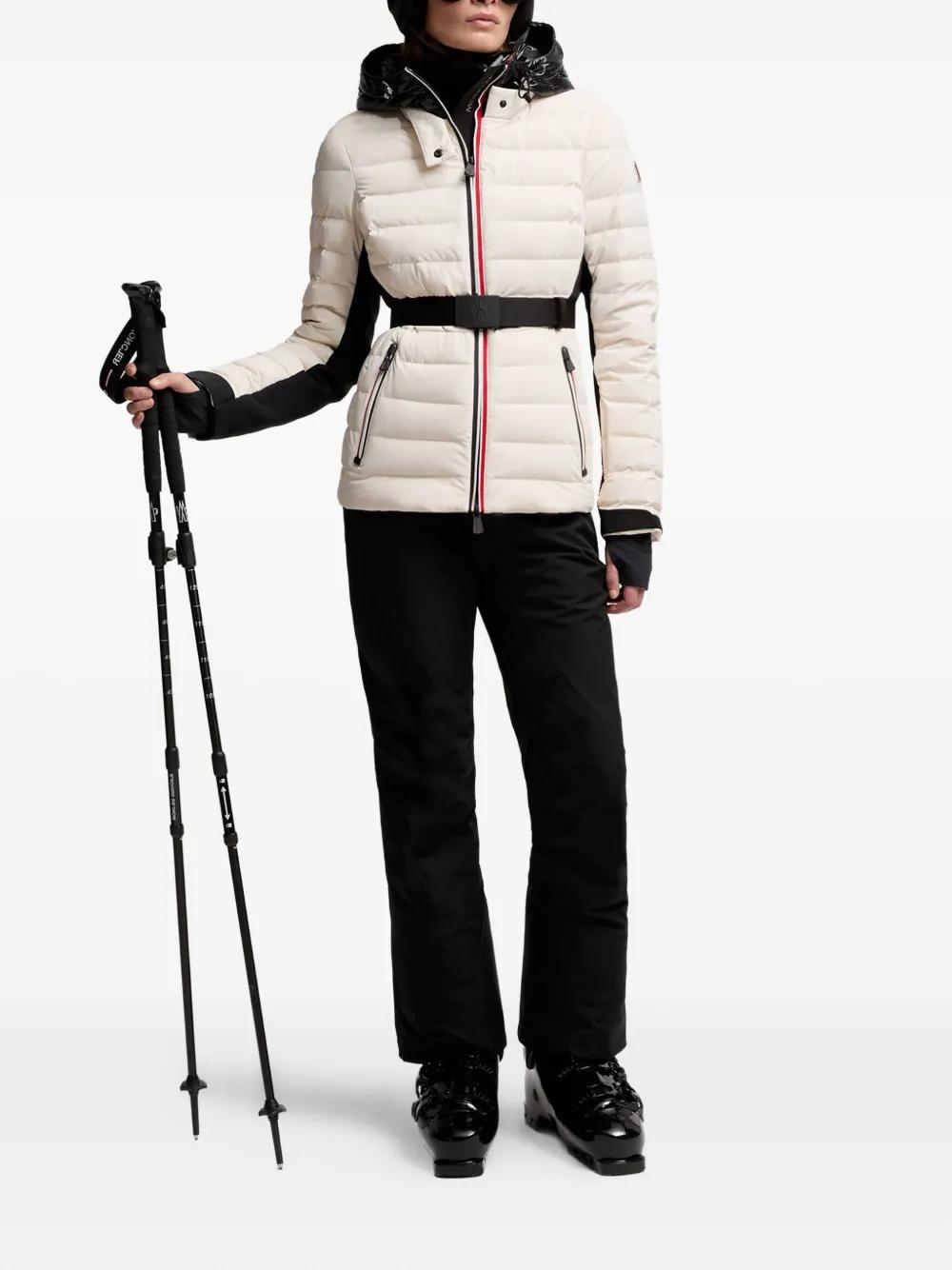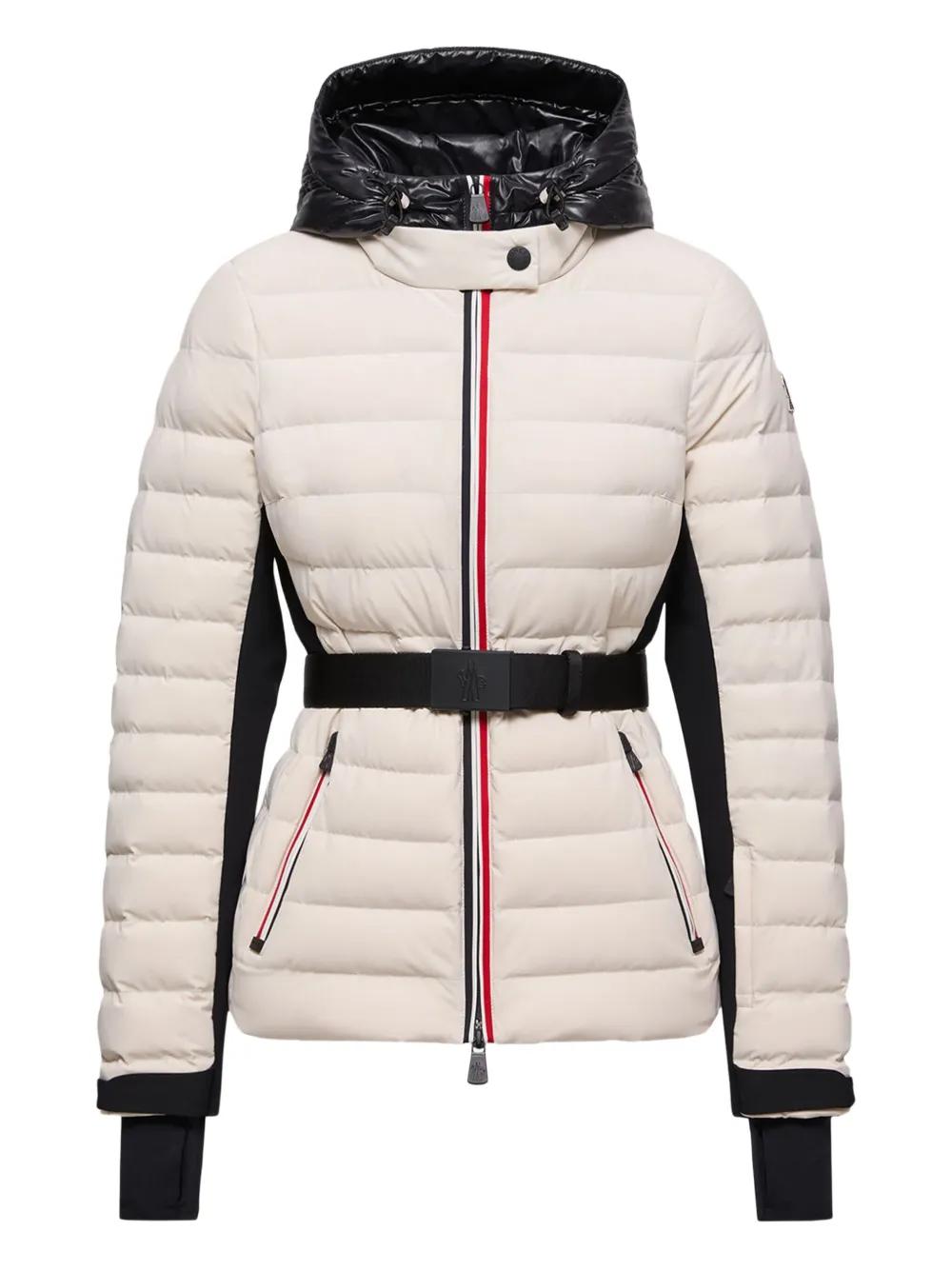 white padded design adjustable hood zip closure removable waistband adjustable cuffs