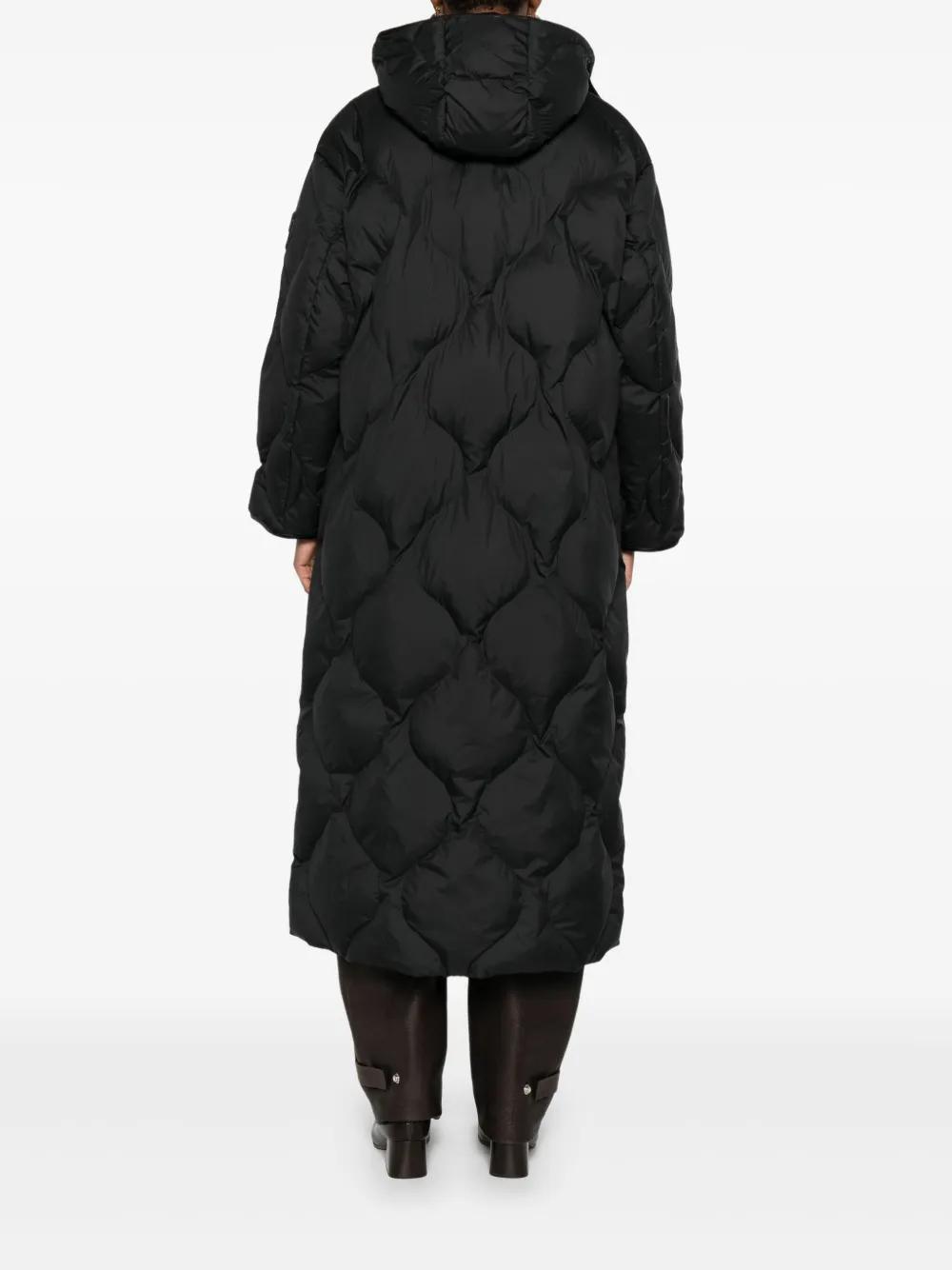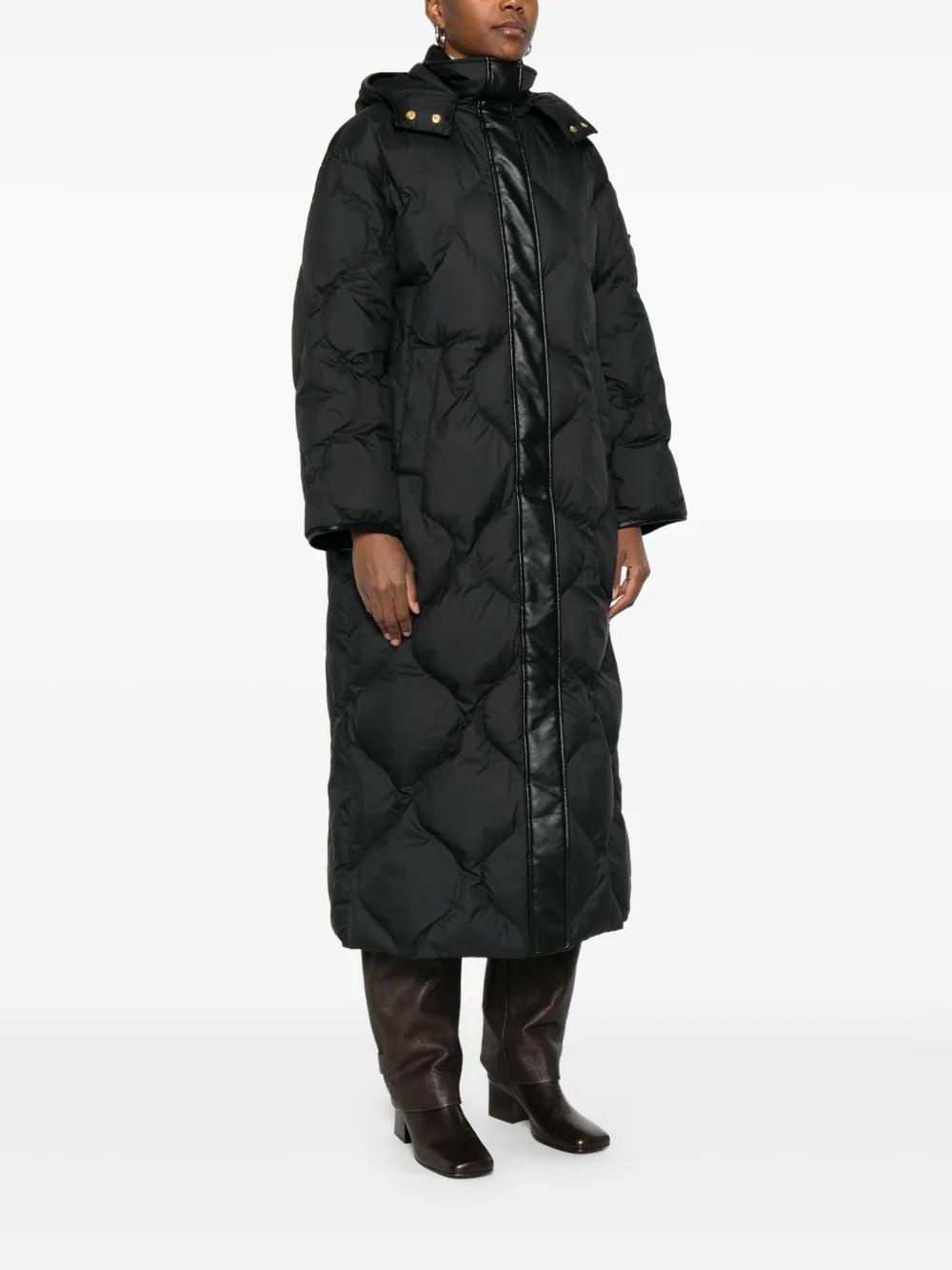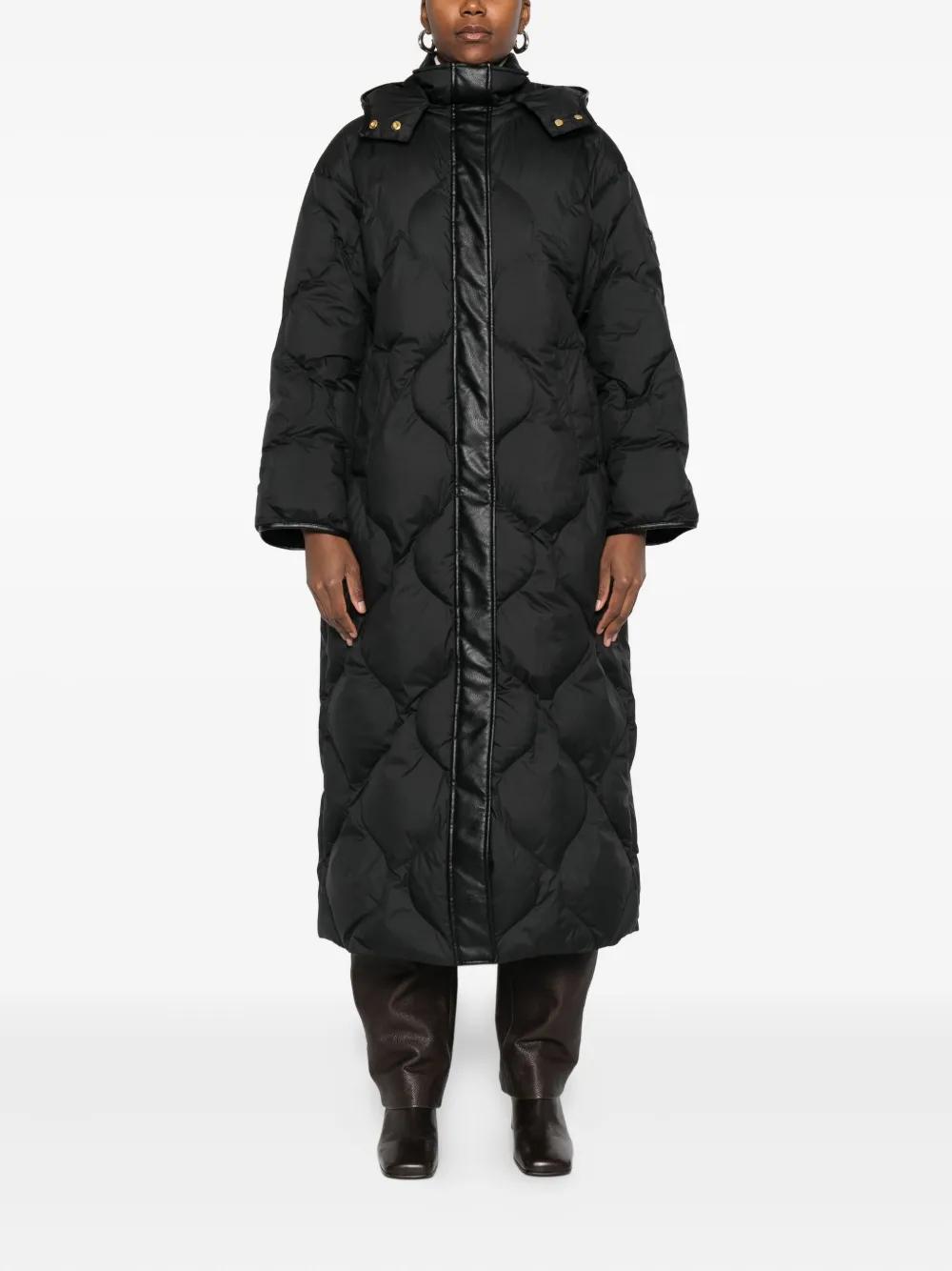 black quilted design leather insert hooded neckline snap button fastening long sleeves
