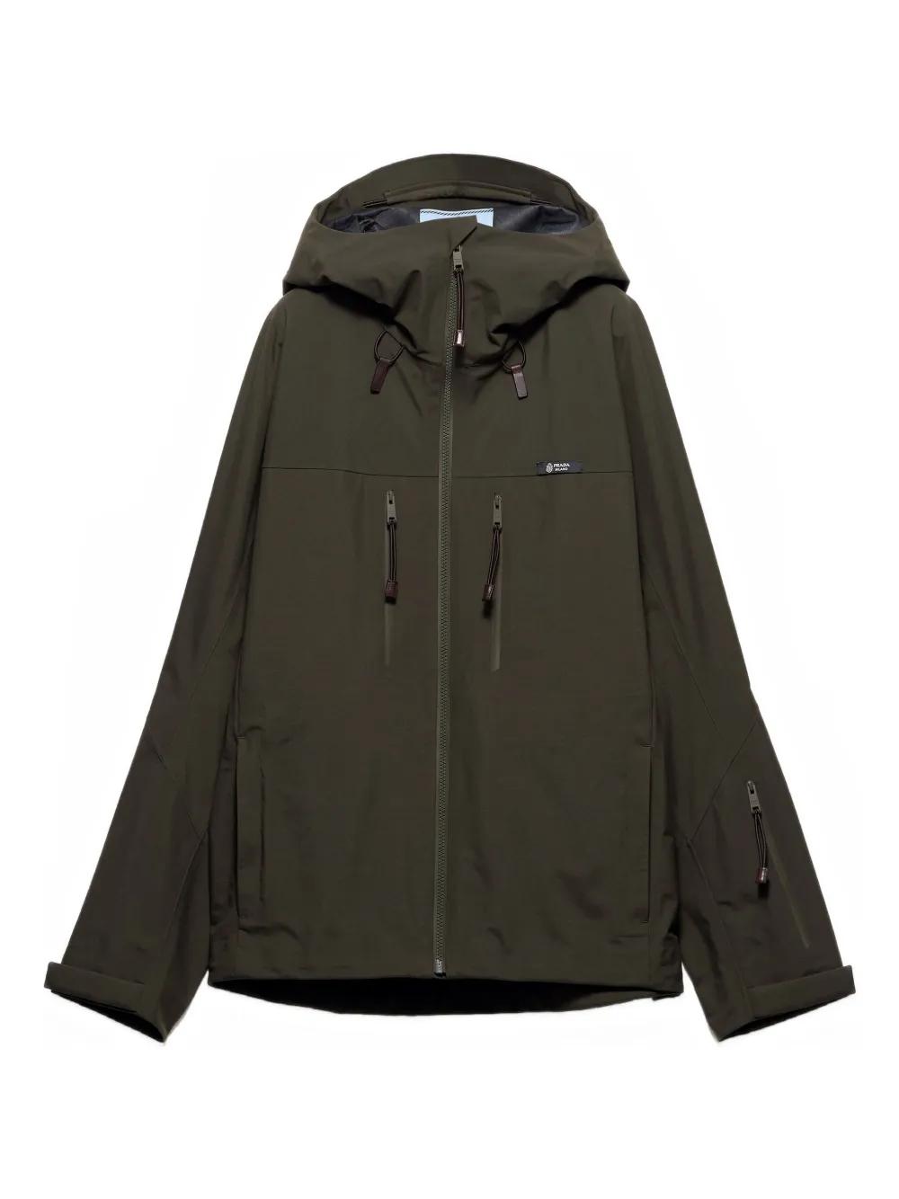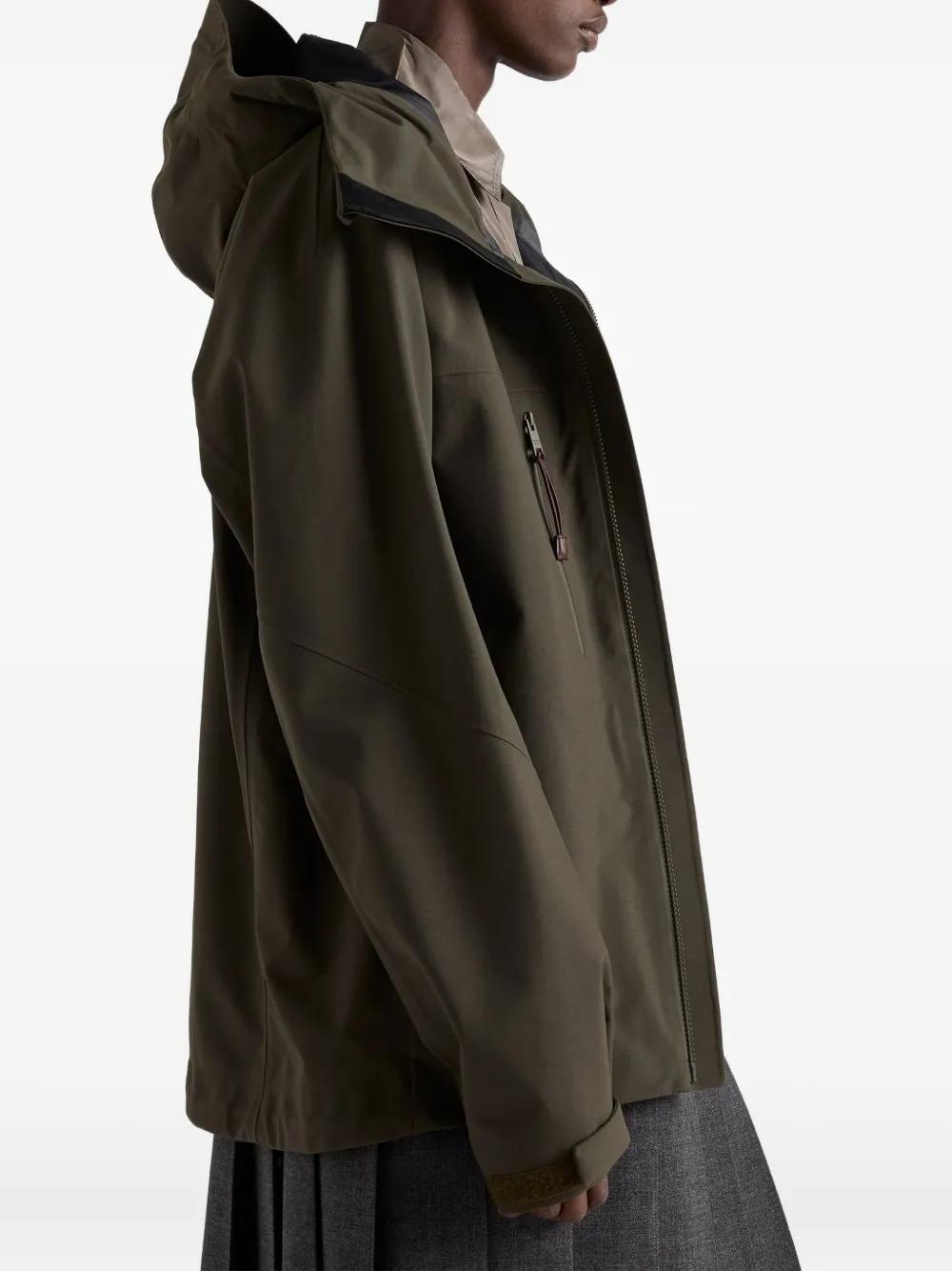 green hood logo label waxed zipper closure waxed zipper pockets hook-and-loop strap cuffs