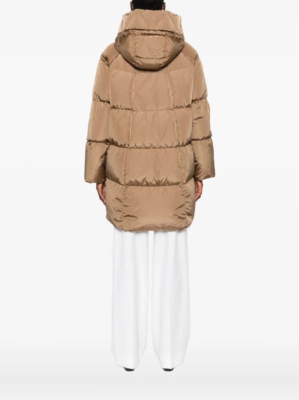 caramel brown hooded drawstring fastening quilted zip fastening panelled construction