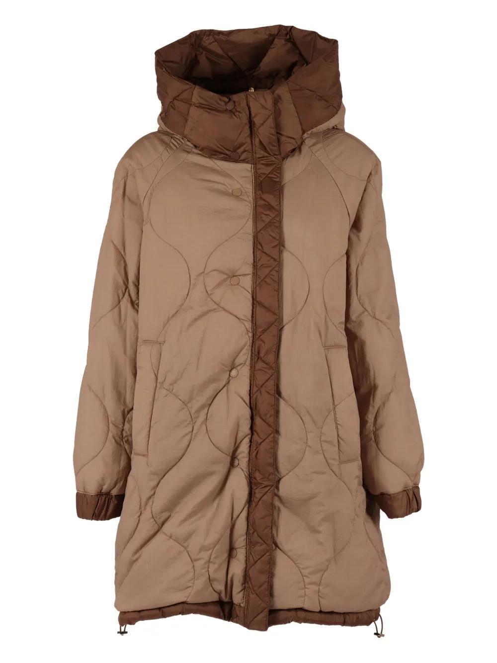 hazelnut quilted design hood button fastening long sleeves drawstring hem