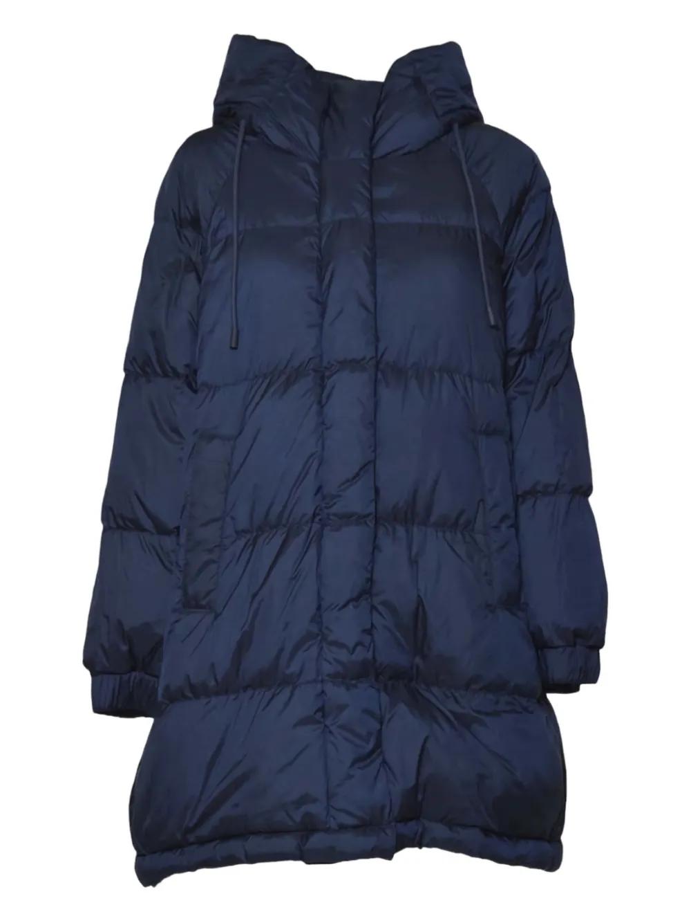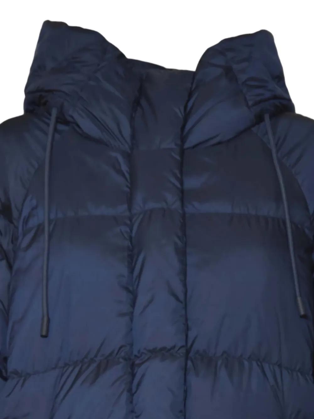 blue quilted design drawstring hood long sleeves elasticated cuffs