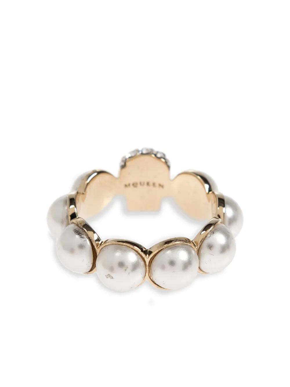 gold-tone crystal-embellished skull faux pearl detailing open band design polished finish