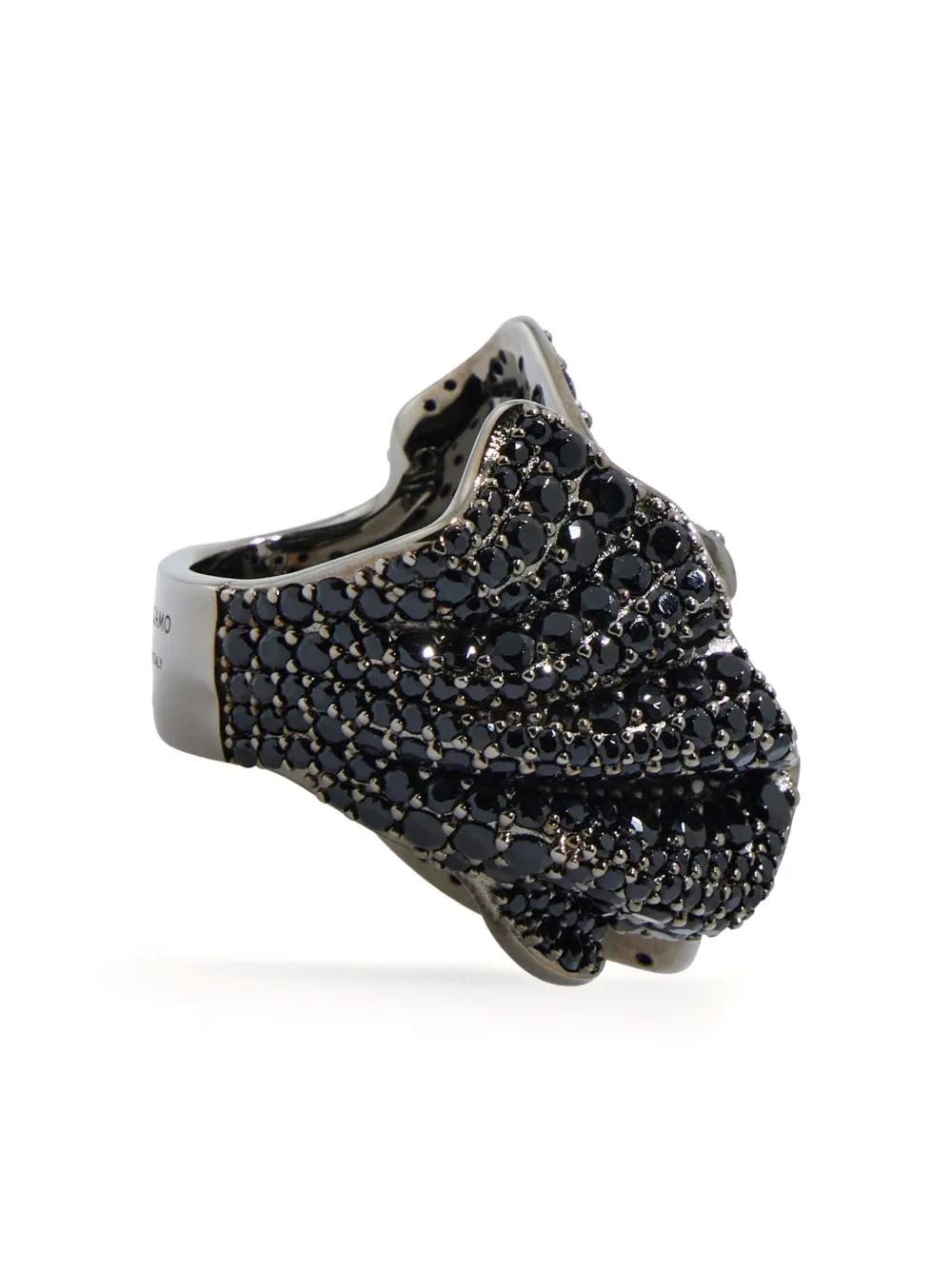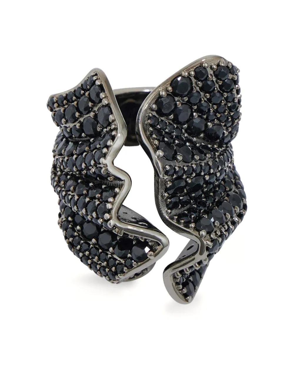 black polished finish glass crystal embellishment cut-out detailing engraved logo