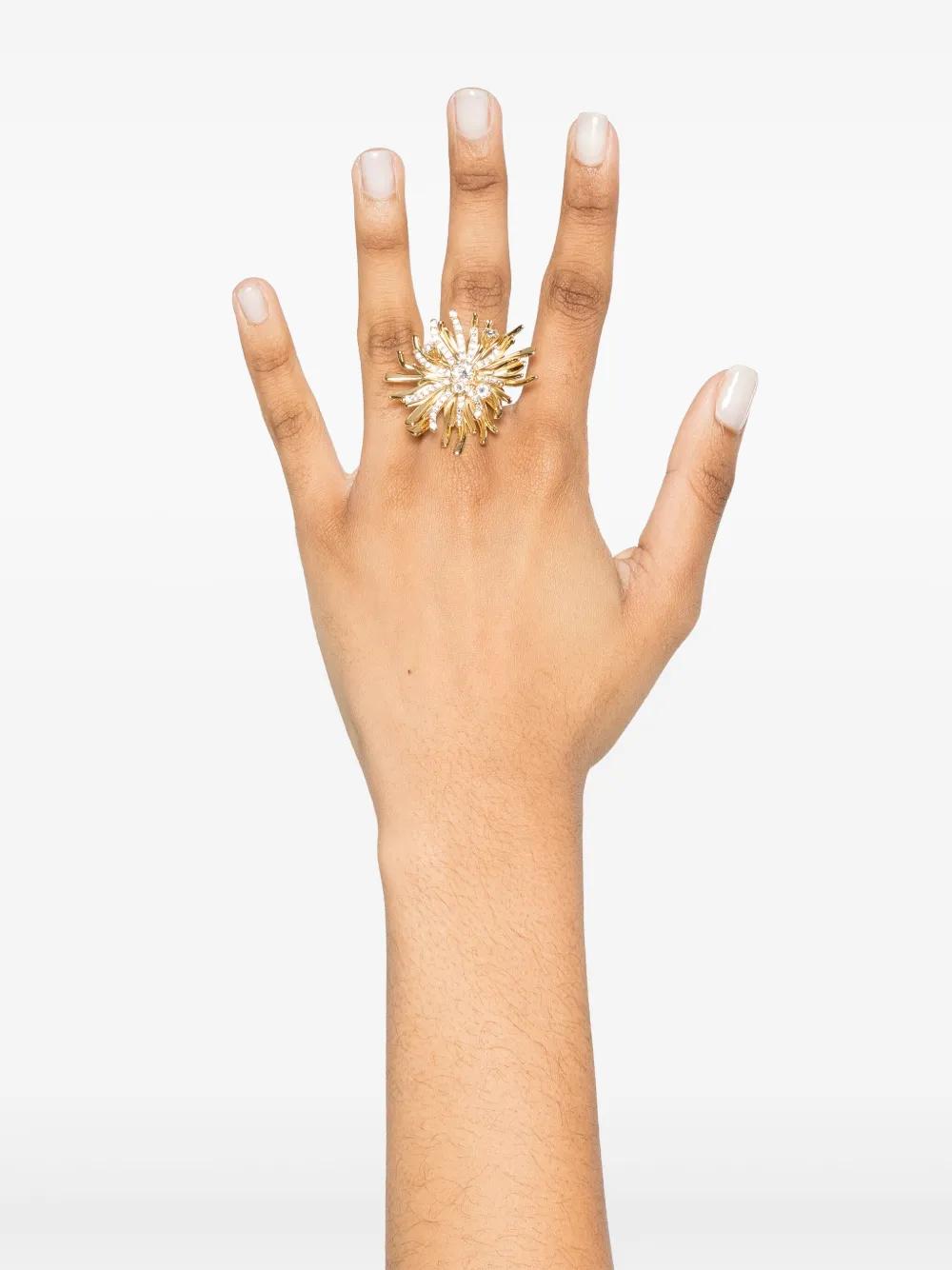 gold-tone cream white brass signet band faux-pearl detailing gold-tone logo plaque crystal embellishment geometric detail polished finish
