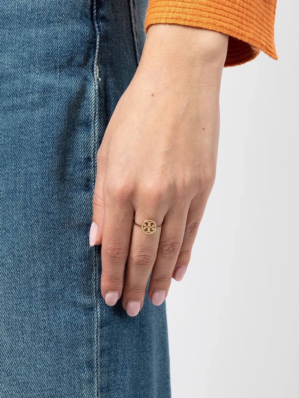 gold-tone cream white brass signet band faux-pearl detailing gold-tone logo plaque crystal embellishment geometric detail polished finish