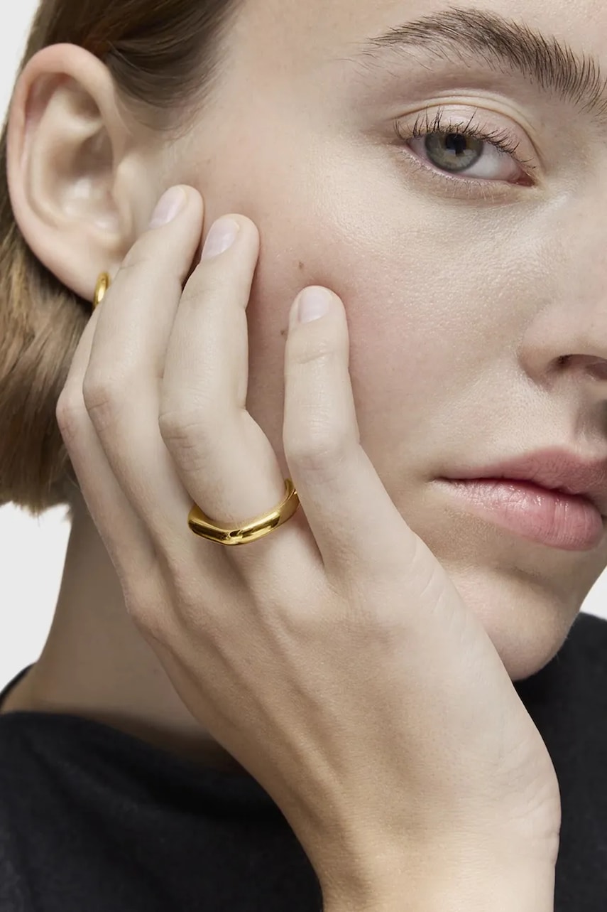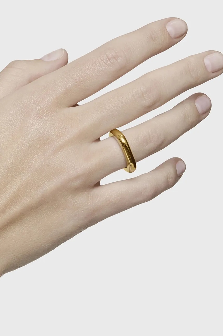 18kt gold plated polished finish signature Double T motif thin band This piece comes complete with a protective dust bag.