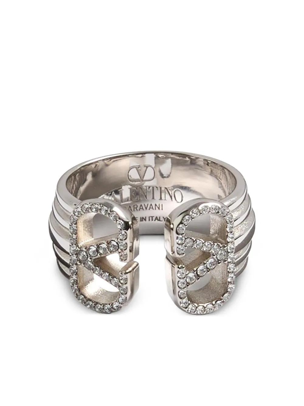 Valentino Garavani Ovalette crystal-embellished metal ring - Silver