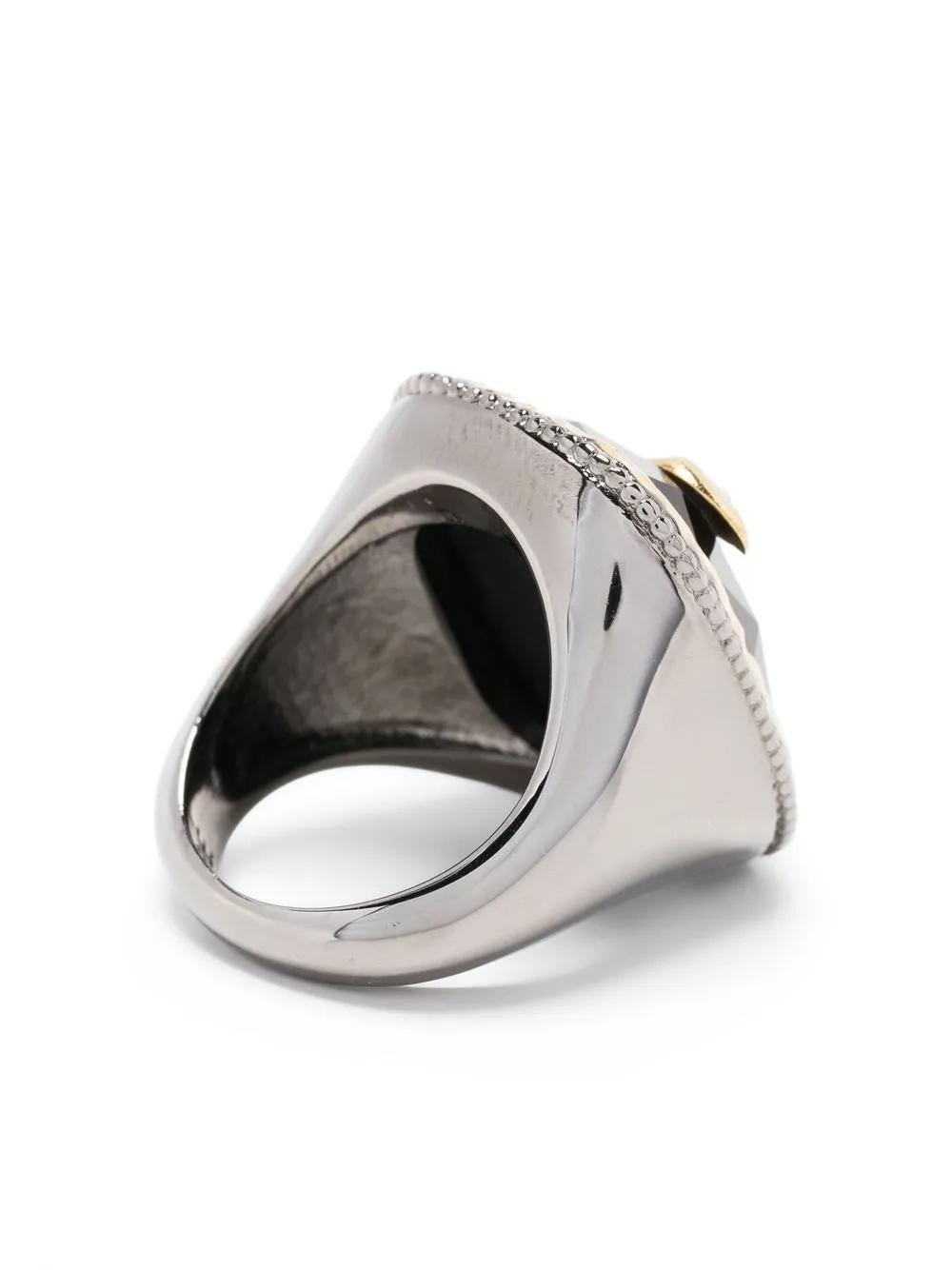 gold-tone cream white brass signet band faux-pearl detailing gold-tone logo plaque crystal embellishment geometric detail polished finish