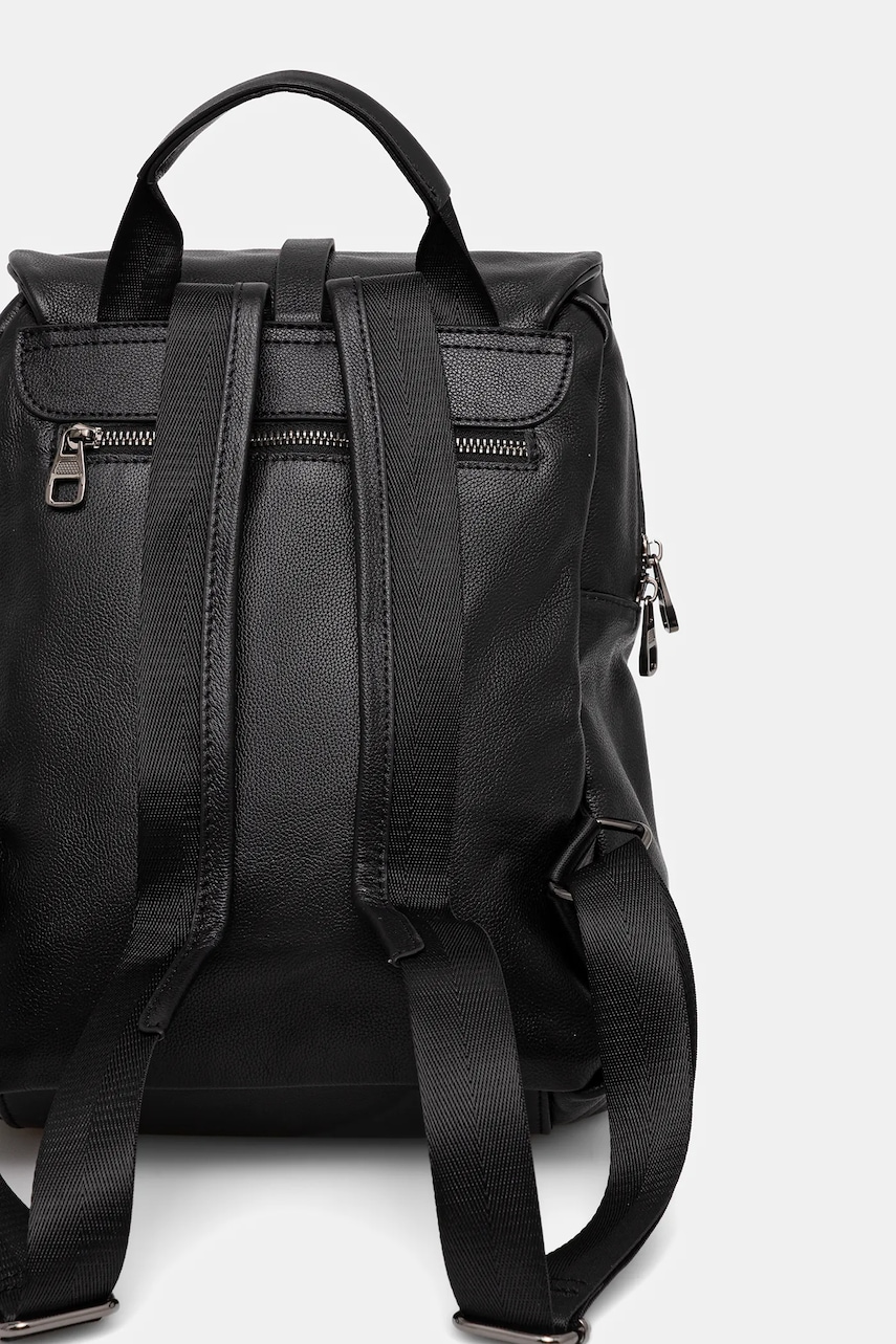 - Zapięcie na magnes. - Z przodu kieszonki zapinane na magnes. - Posiada kieszonki wewnętrzne, w tym jedną zapinaną na suwak. - Nie mieści formatu A4. - Głębokość: 13 cm. - Wysokość: 35 cm. - Szerokość u podstawy: 30 cm.