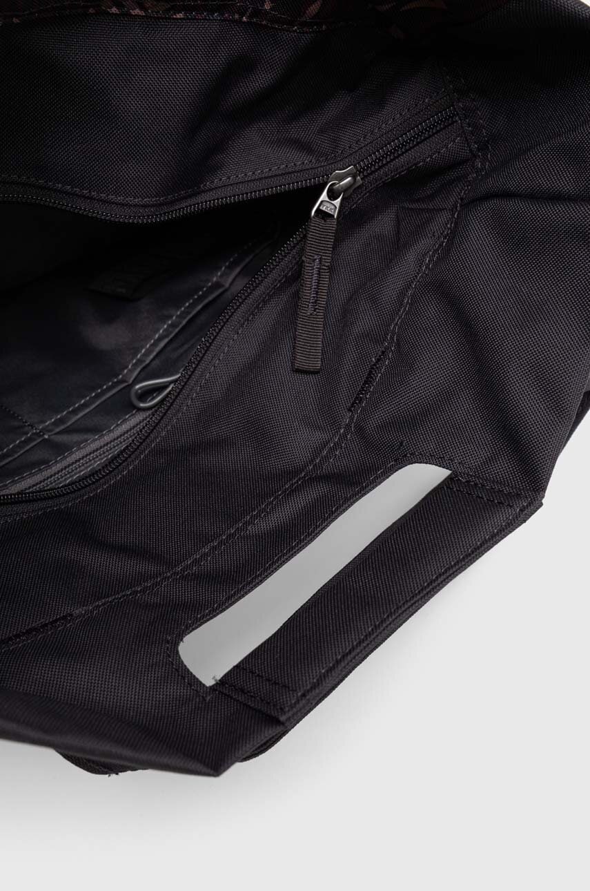 - Klapa zapinana na magnes. - Komora ściągana troczkami. - Z przodu kieszonka zapinana na suwak. - Boczne kieszenie na butelki. - Mieści format A4.