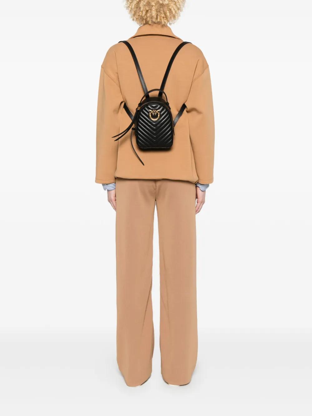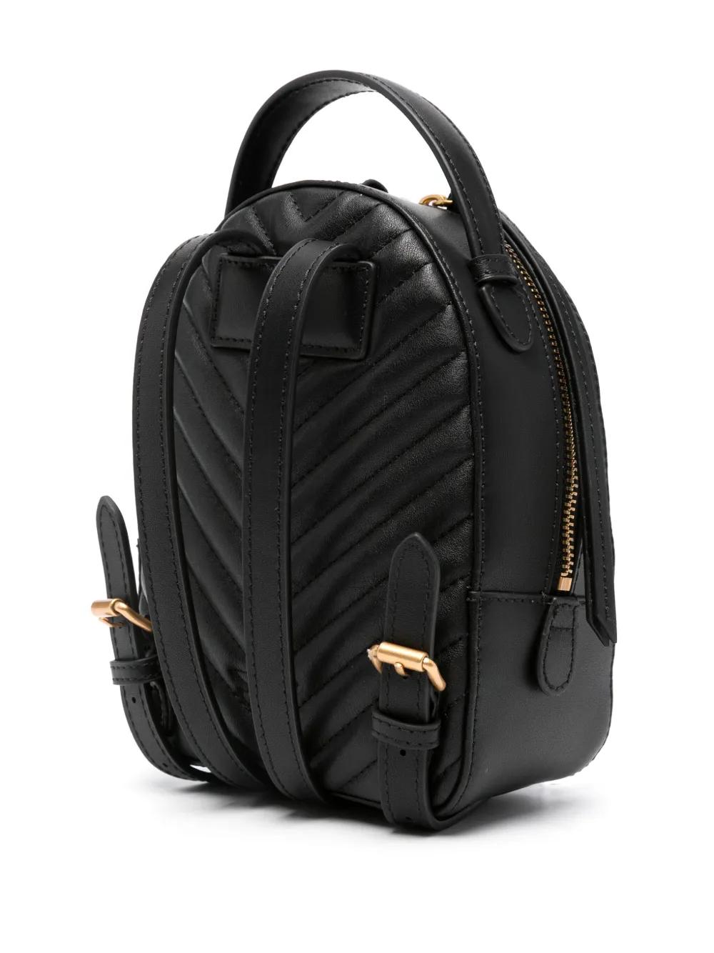 black calf leather smooth grain matelassé effect chevron stitching two-way zip fastening single top handle two adjustable shoulder straps signature Love Birds buckle embroidered logo to the rear main compartment full lining internal zip-fastening pocket internal logo patch This piece comes complete with a protective dust bag.