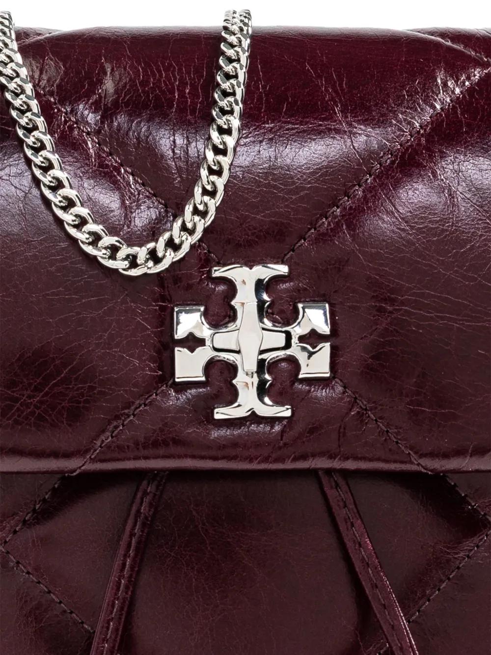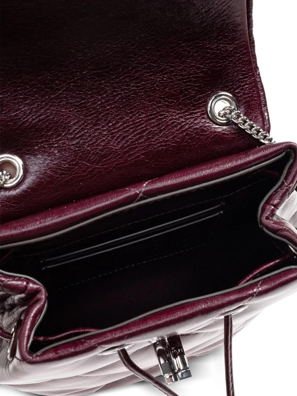 purple quilted foldover top with magnetic fastening chain-link shoulder strap