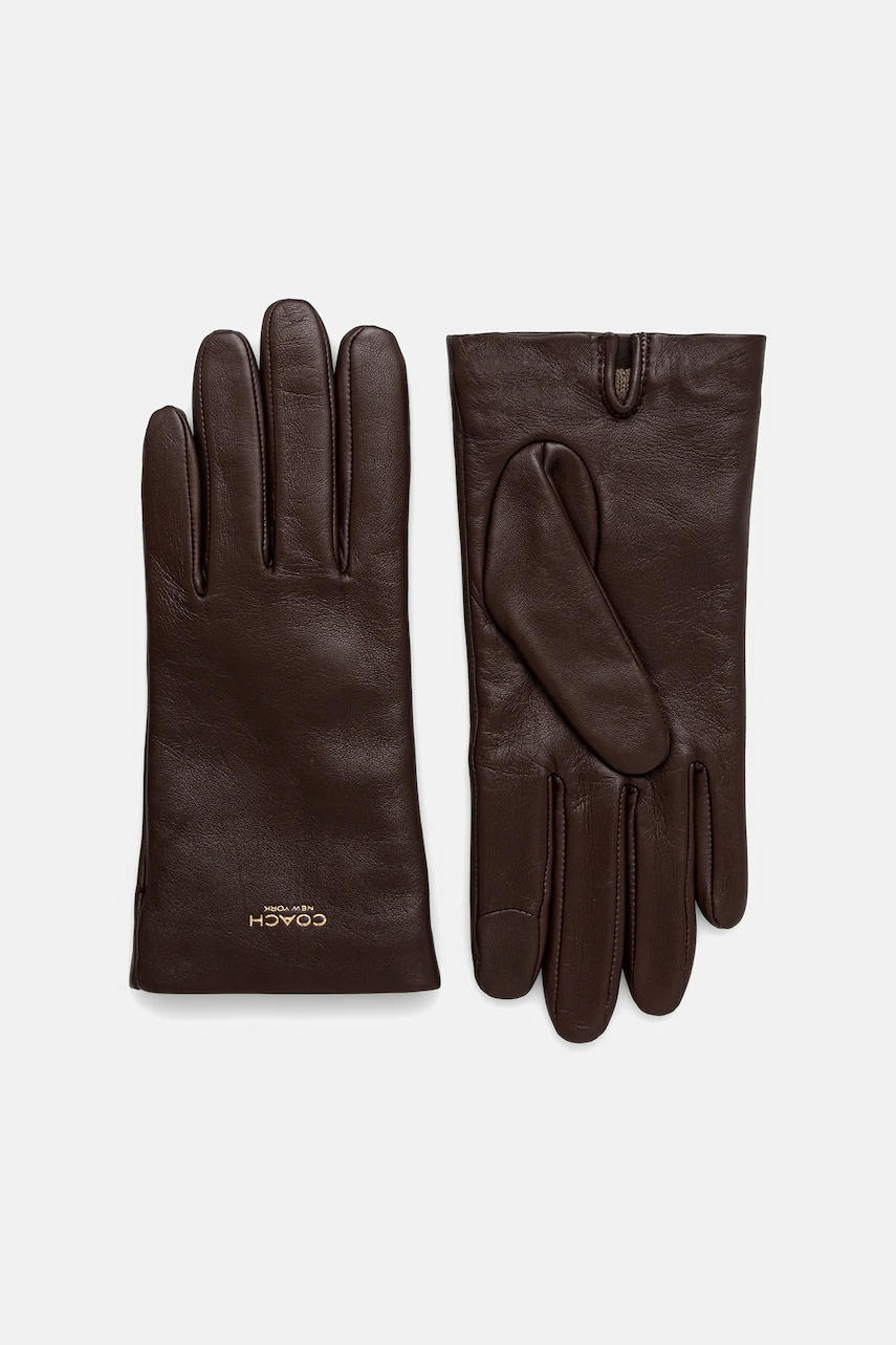 Coach rękawiczki skórzane damskie kolor brązowy 29CCN07