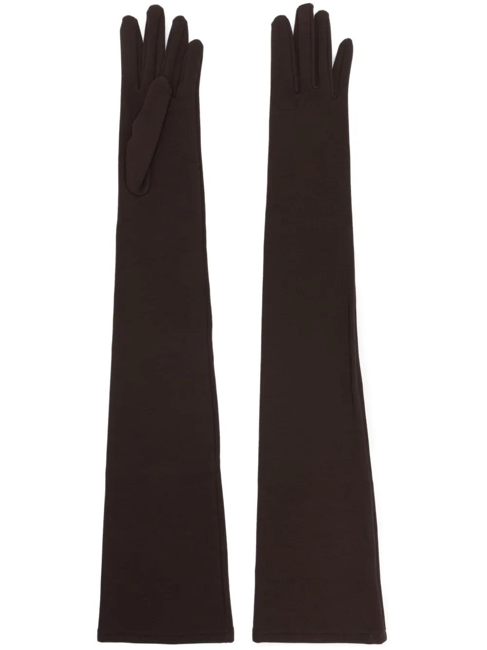 brown stretch-design jersey texture full-finger design elasticated trim long length