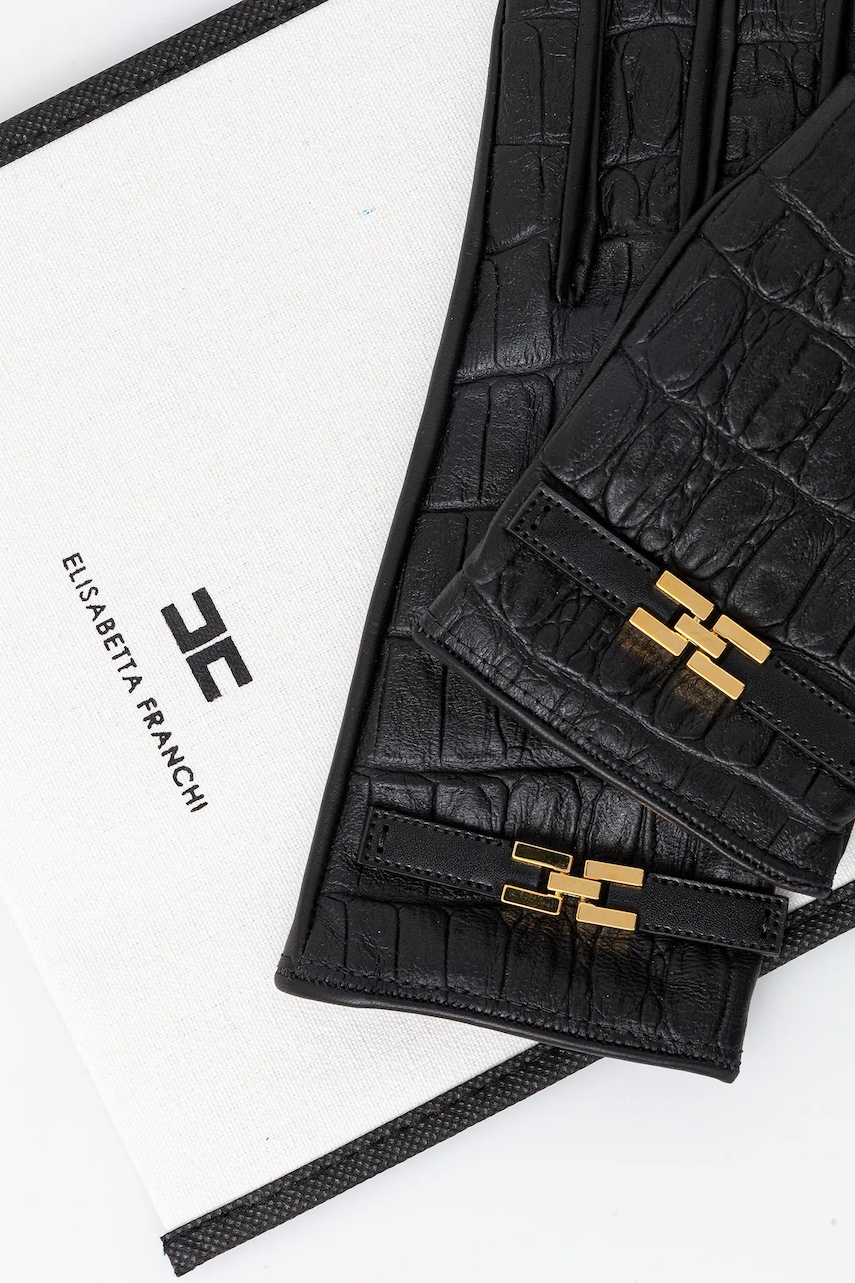 Elisabetta Franchi rękawiczki skórzane damskie kolor czarny GU05R56E2