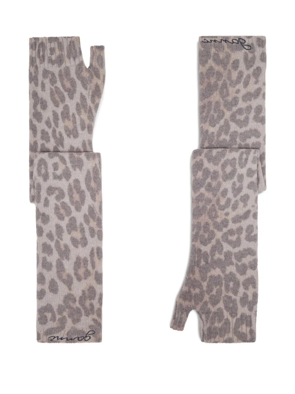 grey ribbed texture crystal embellishment fingerless design long length logo label