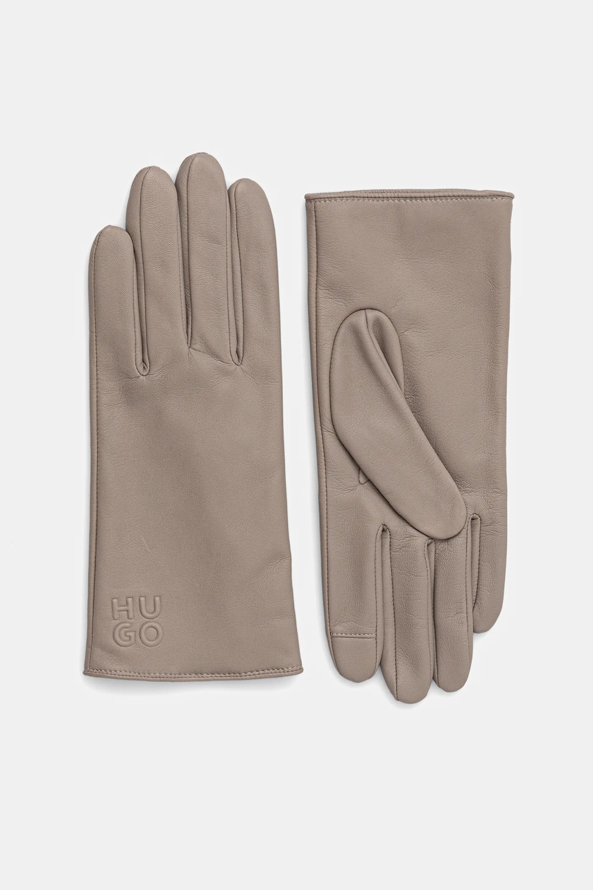 HUGO rękawiczki skórzane damskie kolor beżowy 50526921