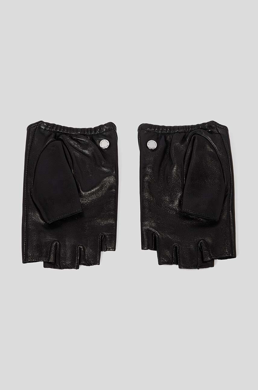 Karl Lagerfeld mitenki skórzane damskie kolor czarny