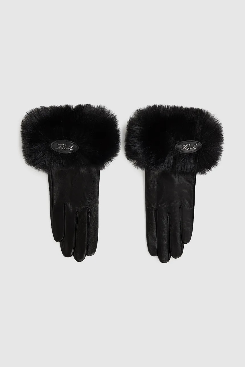 Karl Lagerfeld rękawiczki skórzane K/SIGNATURE damskie kolor czarny A4W33016