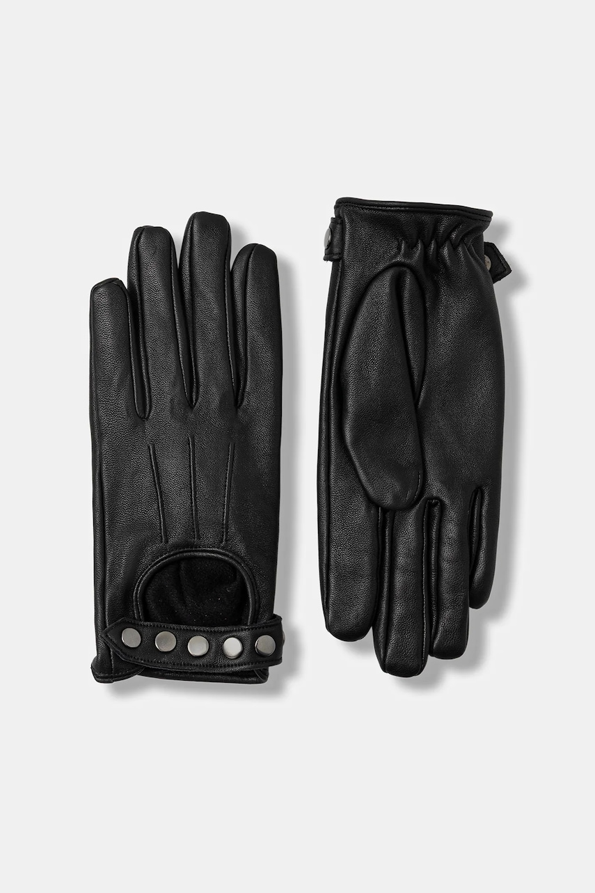 - Pięciopalczasty model. - Zapięcie na zatrzask. - Ozdobne marszczenia i przeszycia. - Model z ćwiekami.