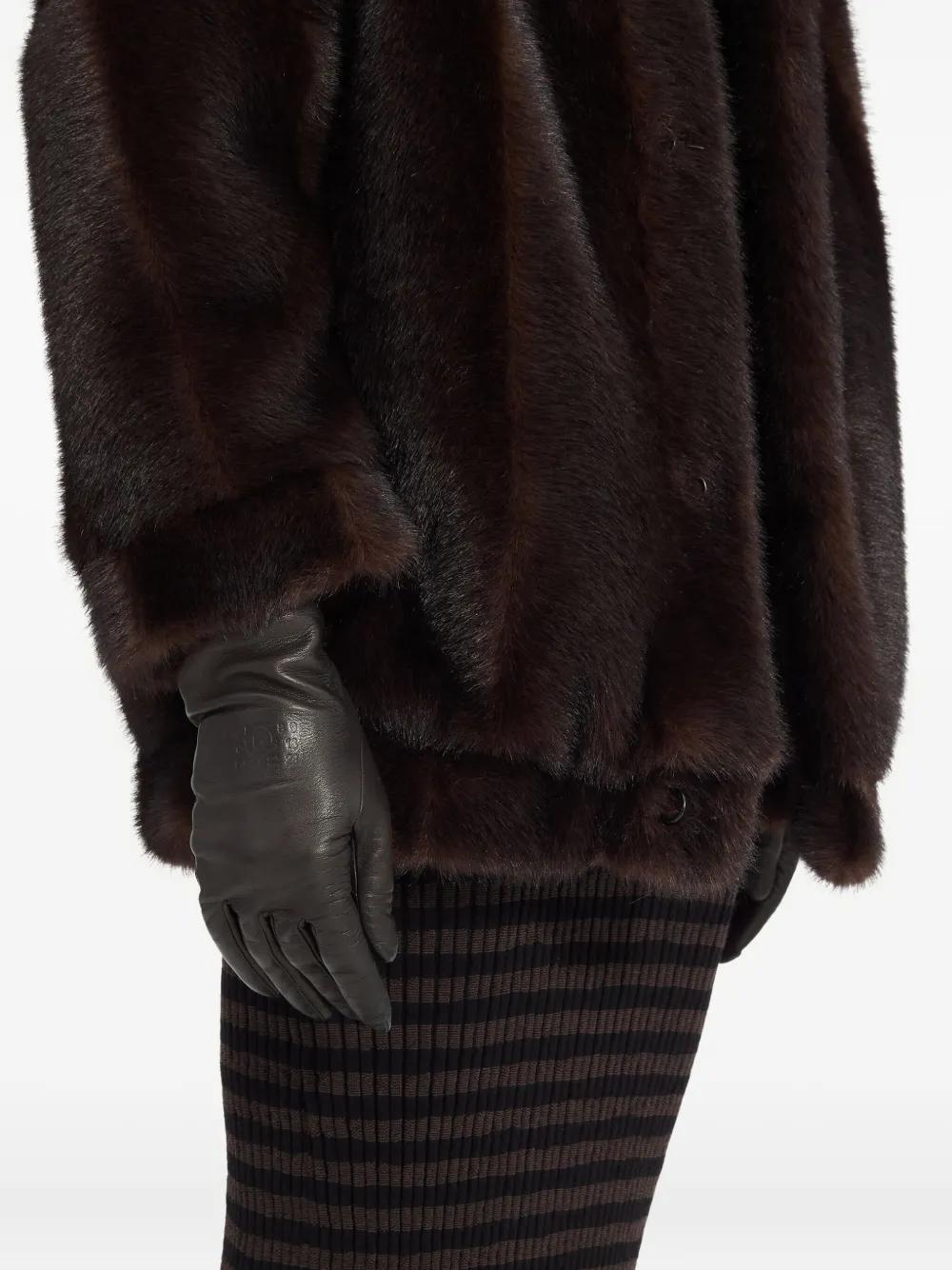 dark brown lambskin leather long length five-finger design signature single-stitching logo