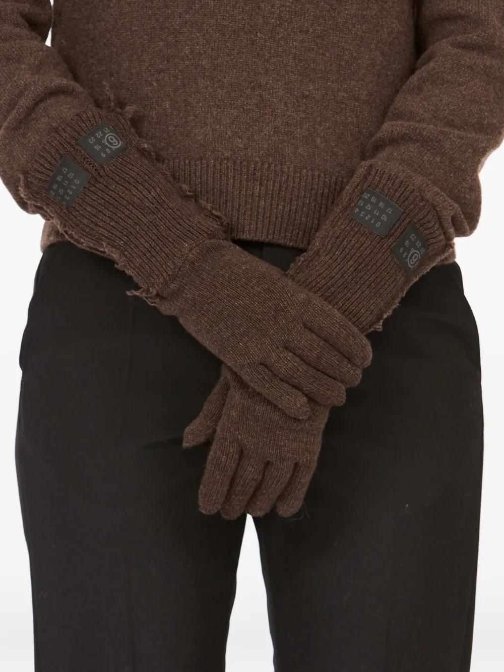 MM6 Maison Margiela ribbed-knit gloves - Brown