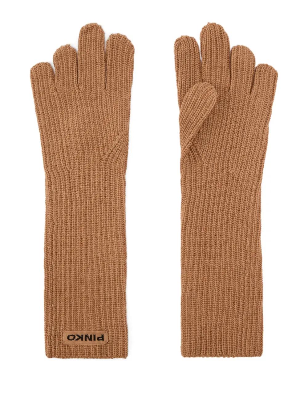 grey ribbed texture crystal embellishment fingerless design long length logo label