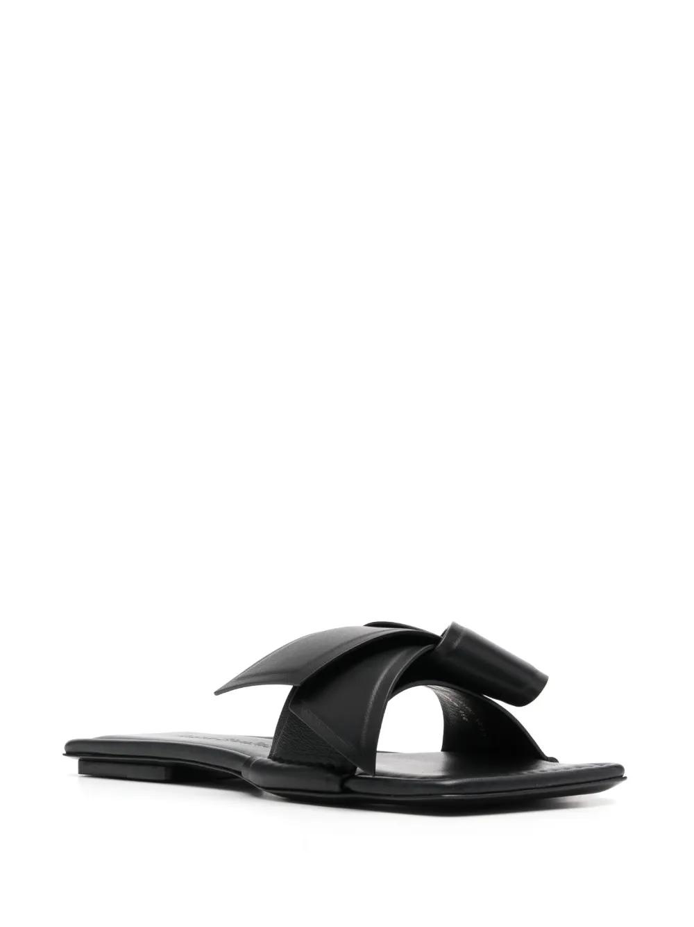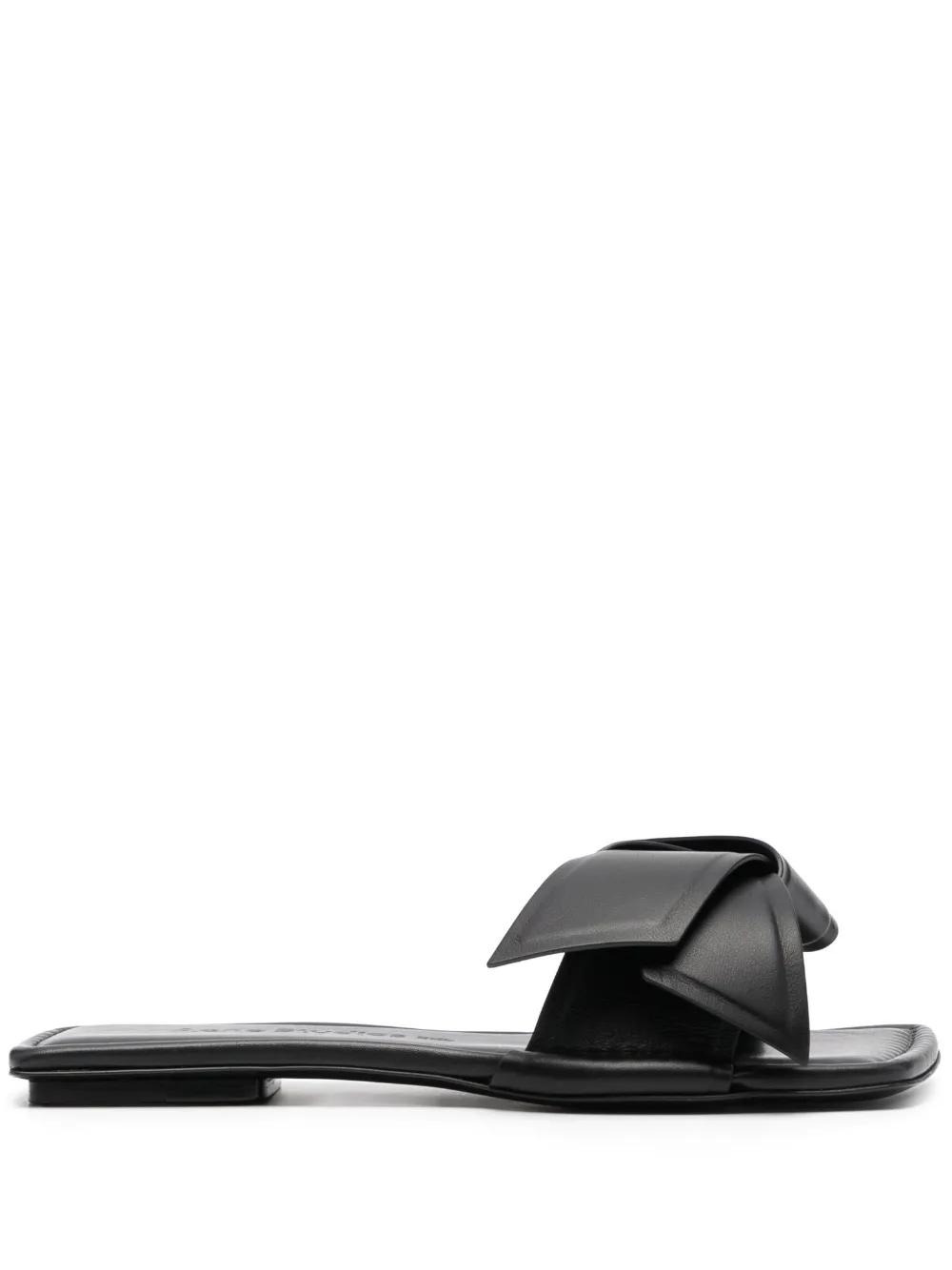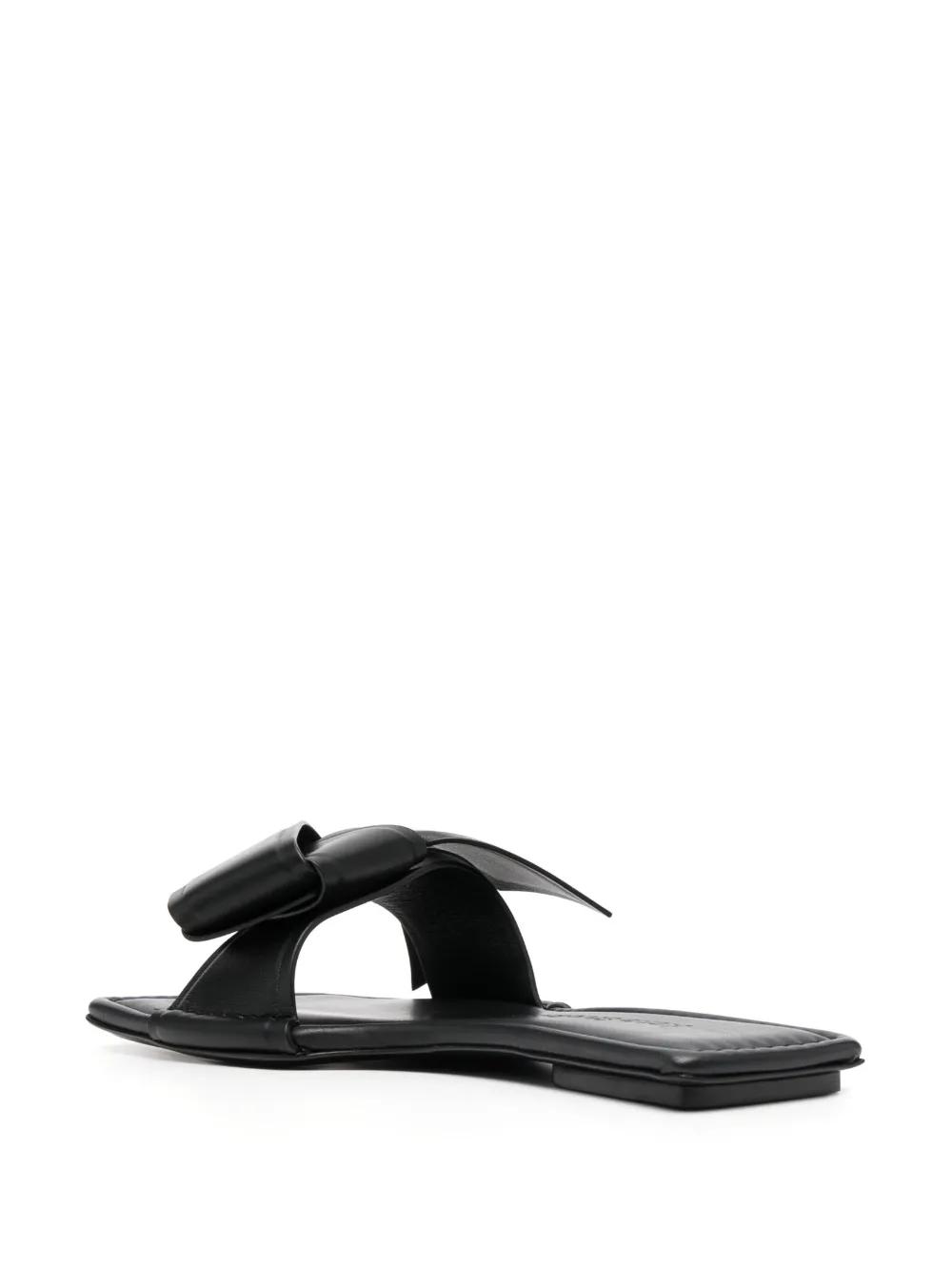 black calf leather bow detailing open toe slip-on style branded footbed flat leather sole