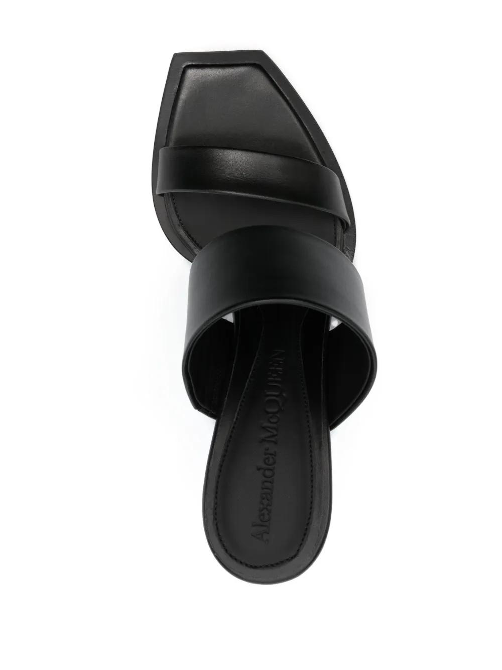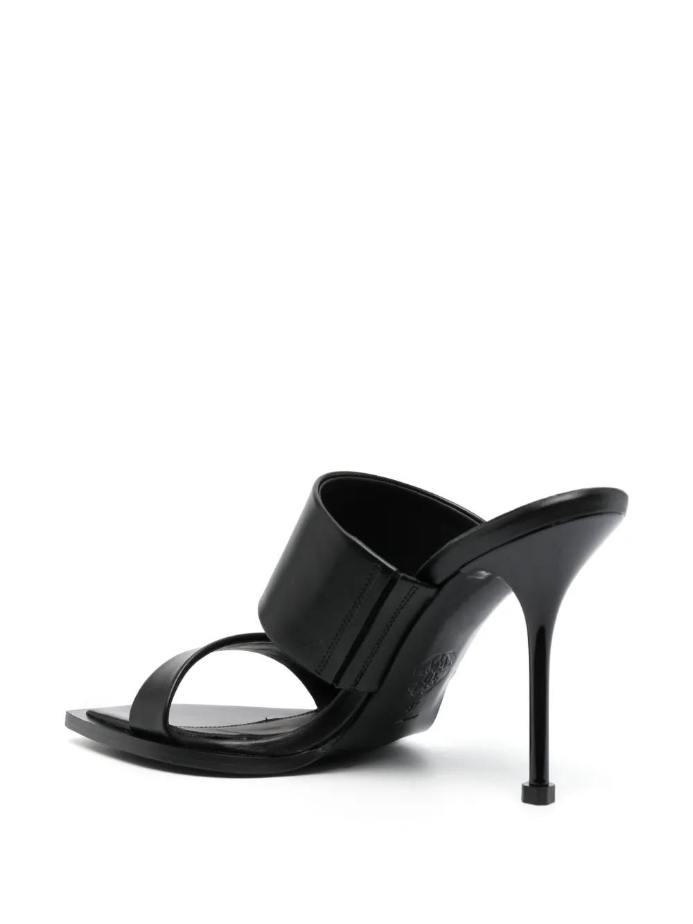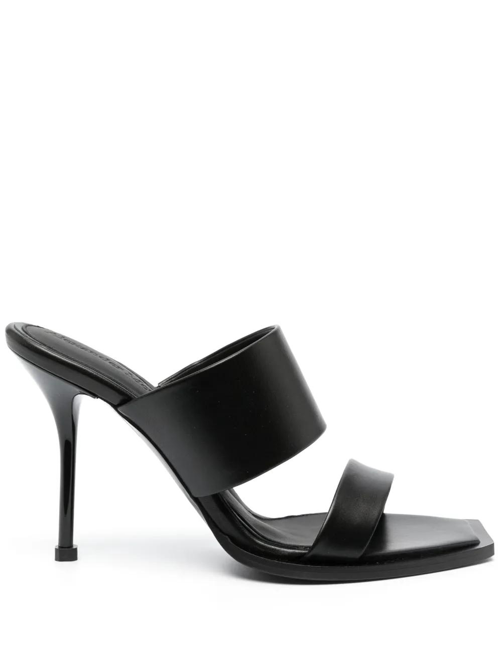 black calf leather open square toe double strap design branded insole 105mm stiletto heel