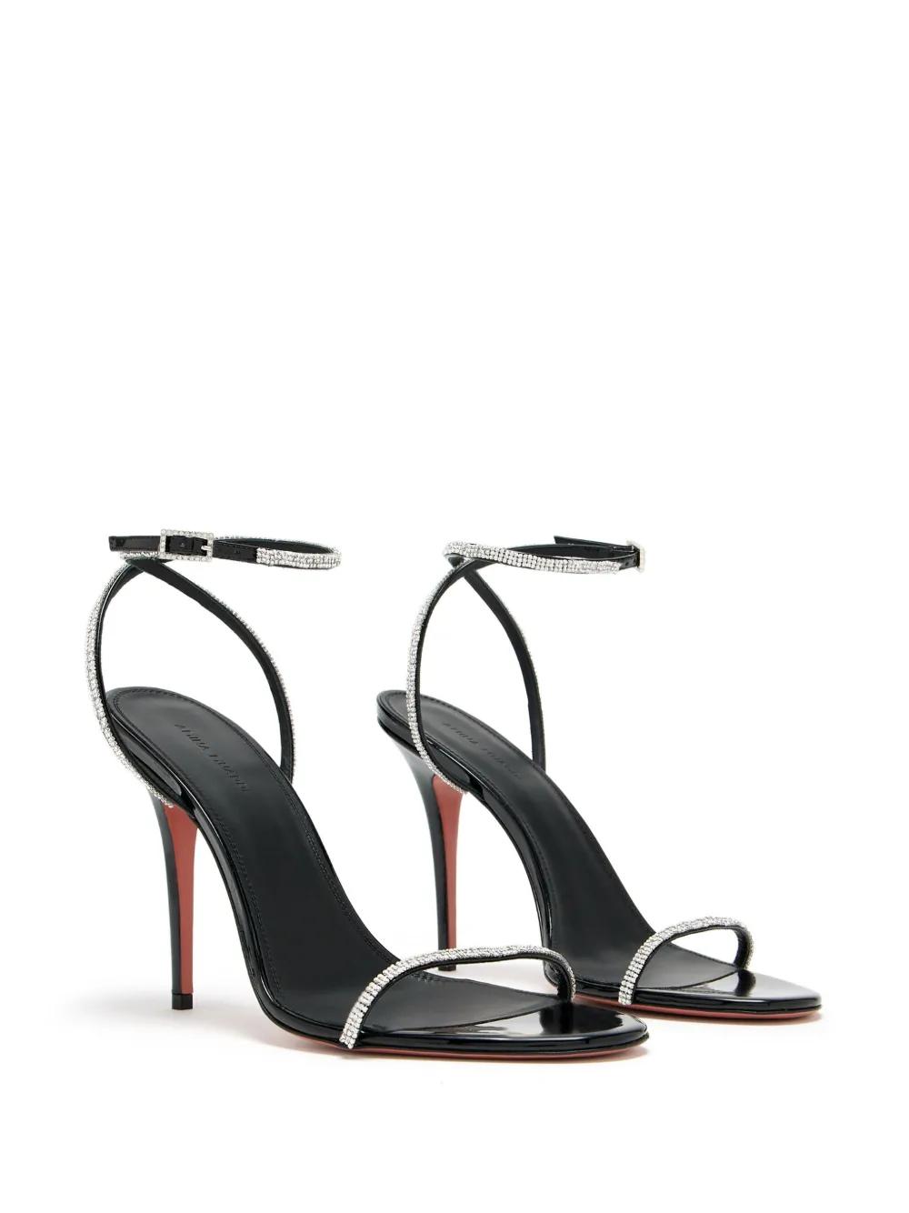 black buckle-fastening ankle strap single toe strap crystal embellishment branded footbed