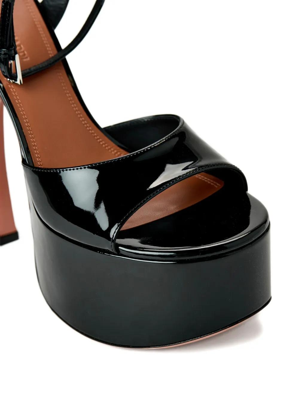 black platform sole stiletto heel ankle strap buckle fastening open toe