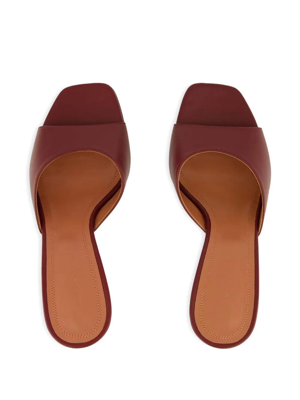 bordeaux red leather 70mm heel slip-on style square open toe sculpted heel
