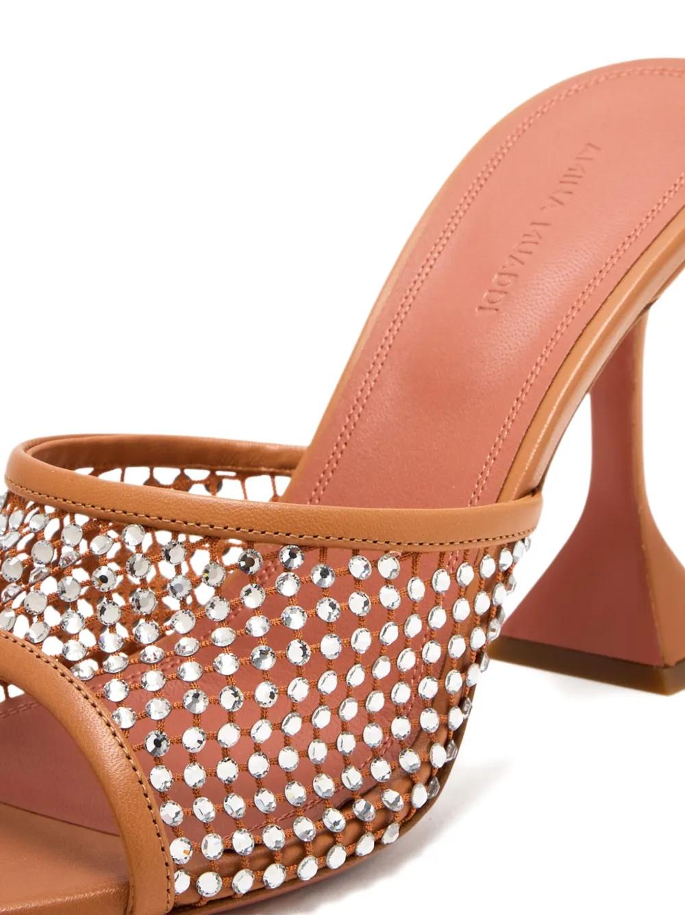 Amina Muaddi 95mm crystal-embellished net sandals - Brown