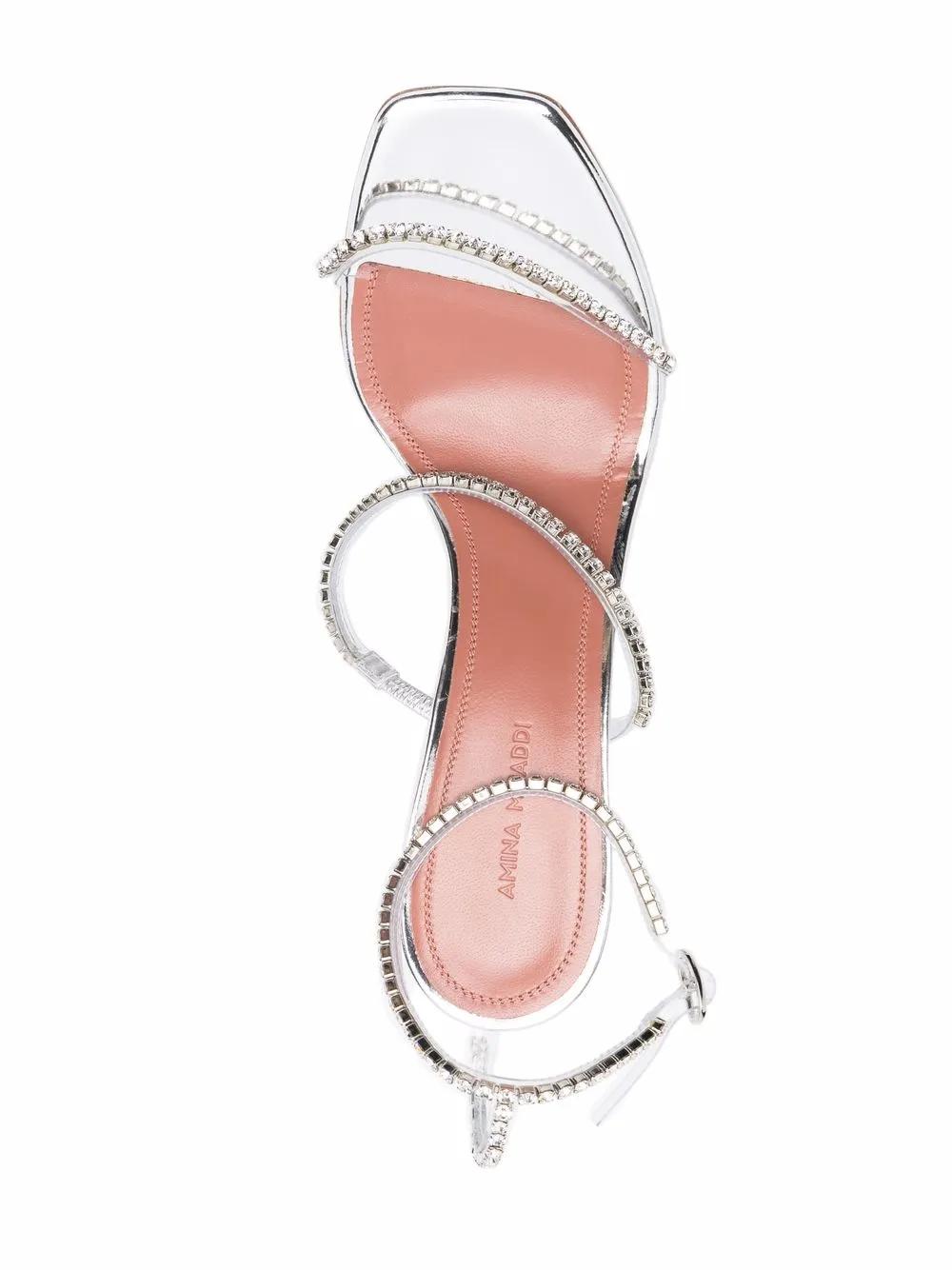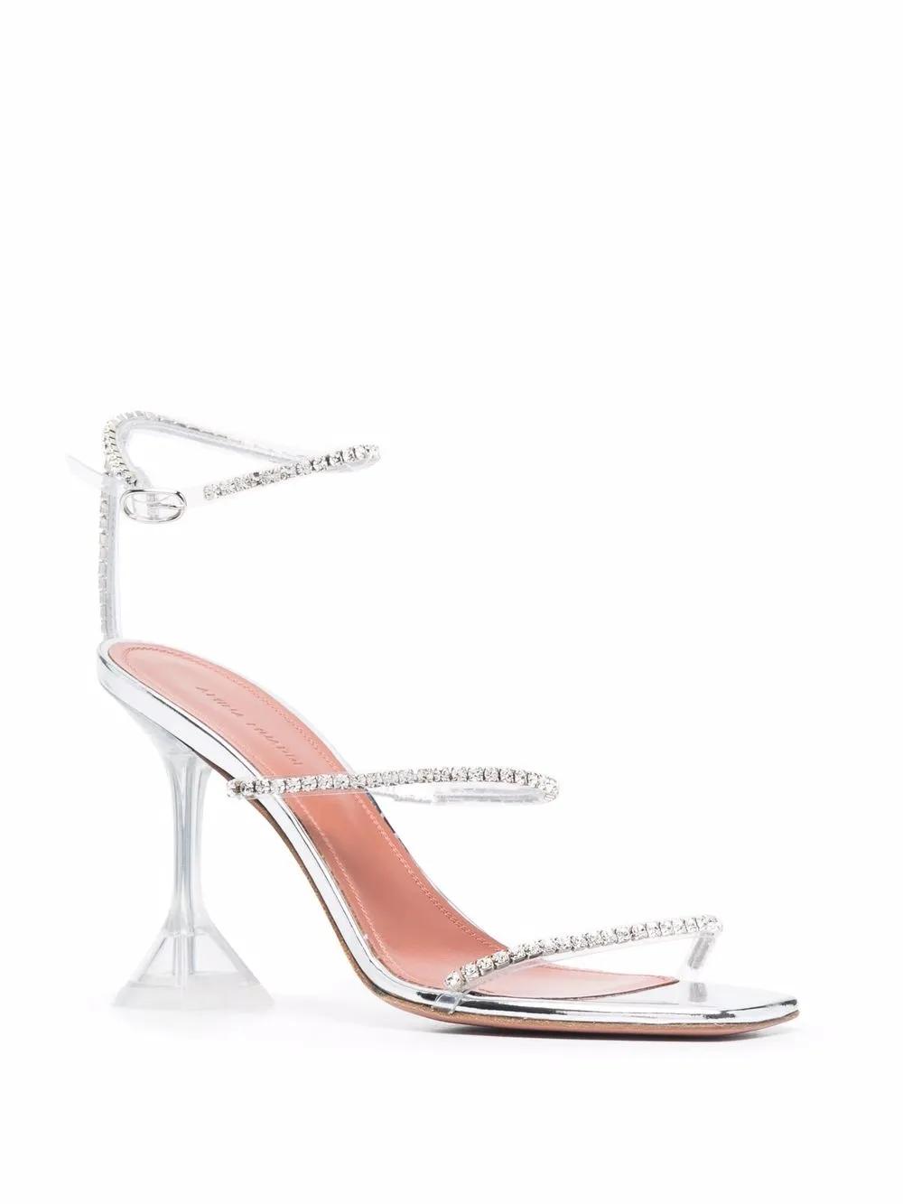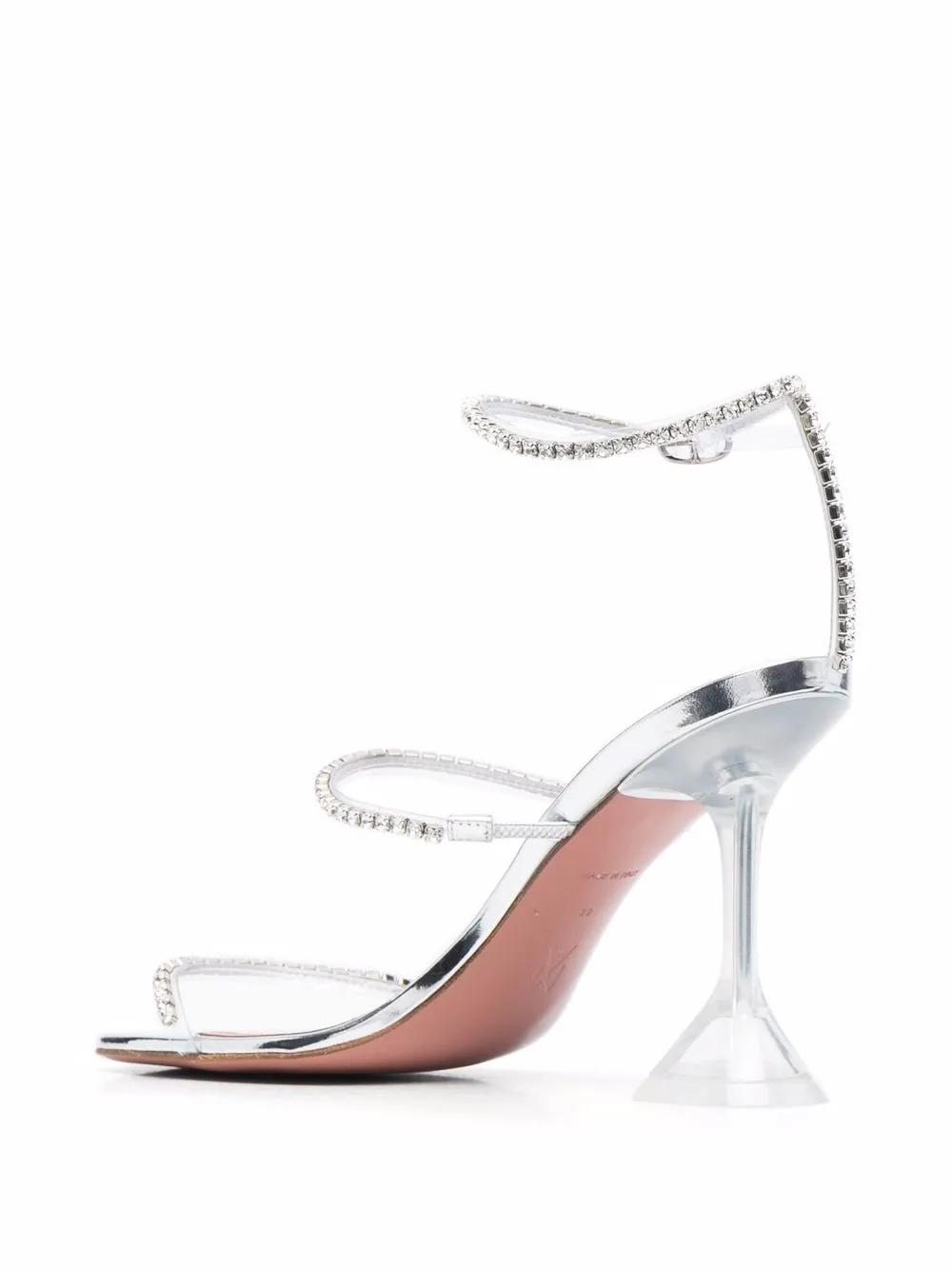silver leather crystal embellishment strap detailing metallic effect open toe buckle-fastening ankle strap high heel