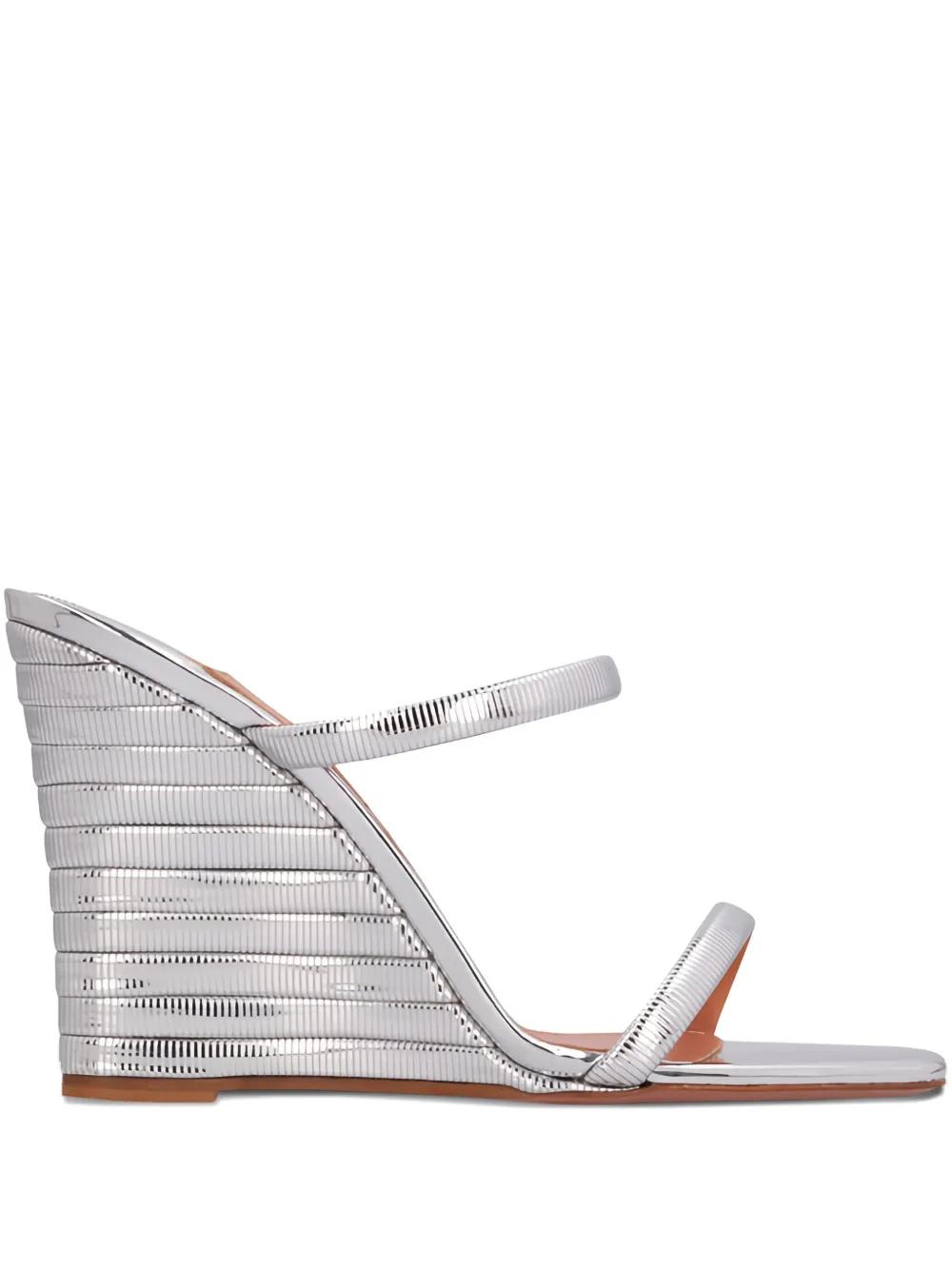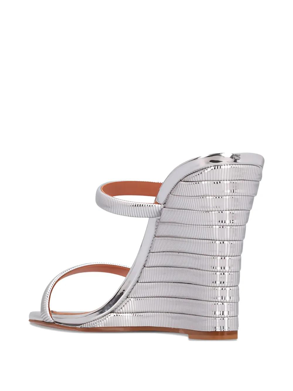 silver-tone wedge heel double straps open toe slip-on style flat sole