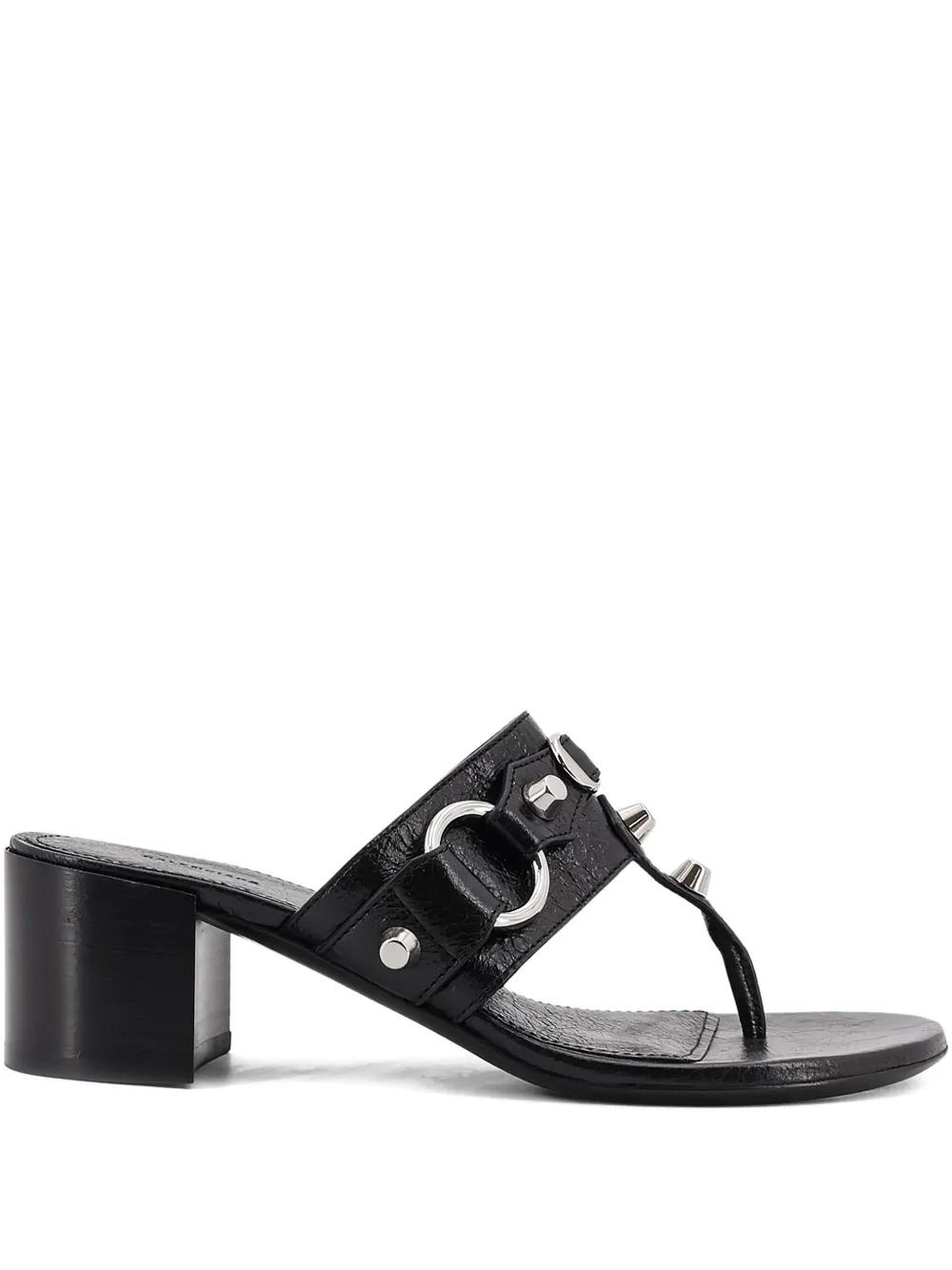 Balenciaga 50mm studs buckle leather heeled sandals - Black